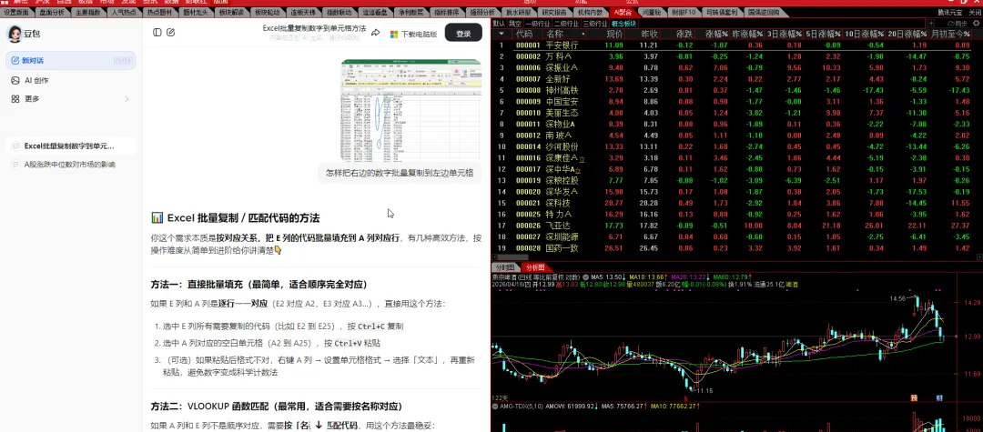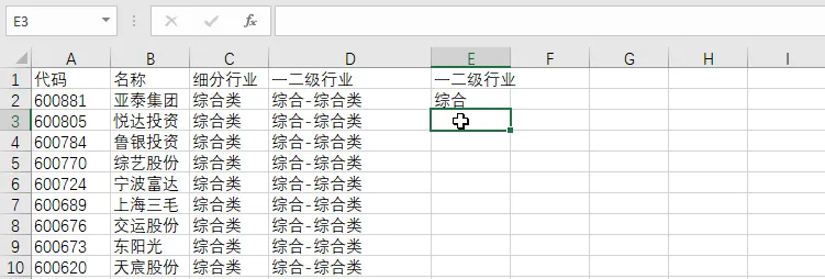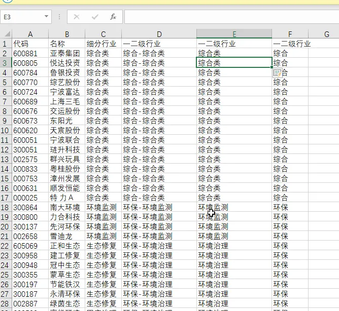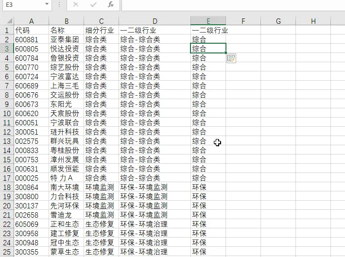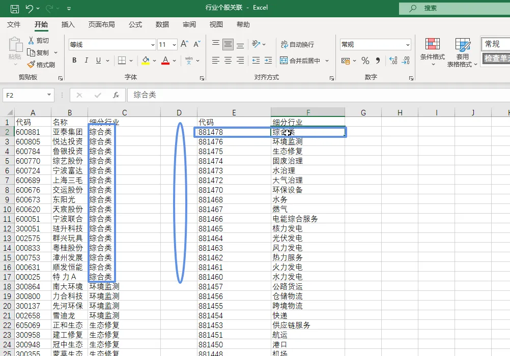 把右边的行业代码对应到左边个股