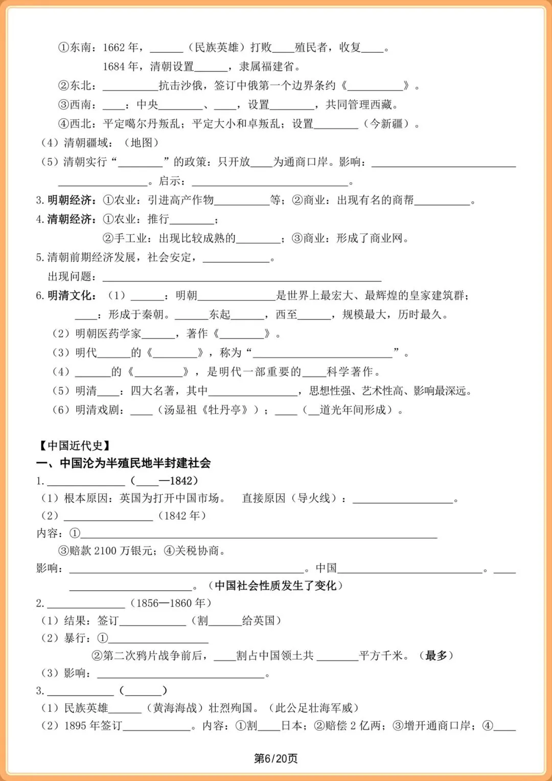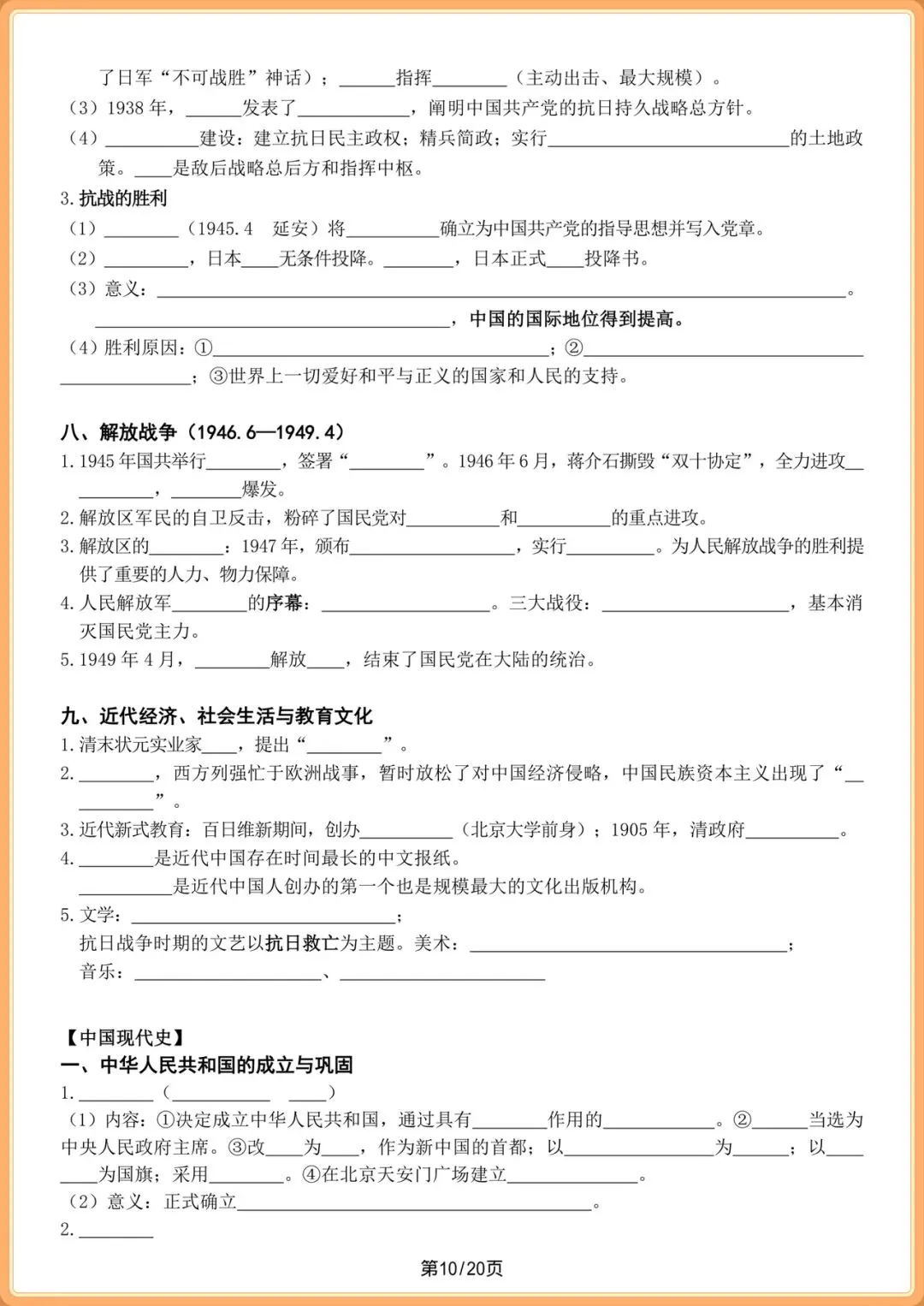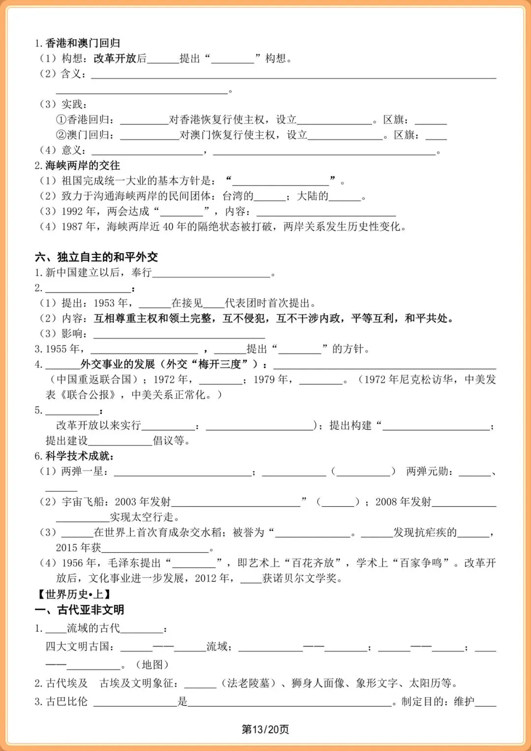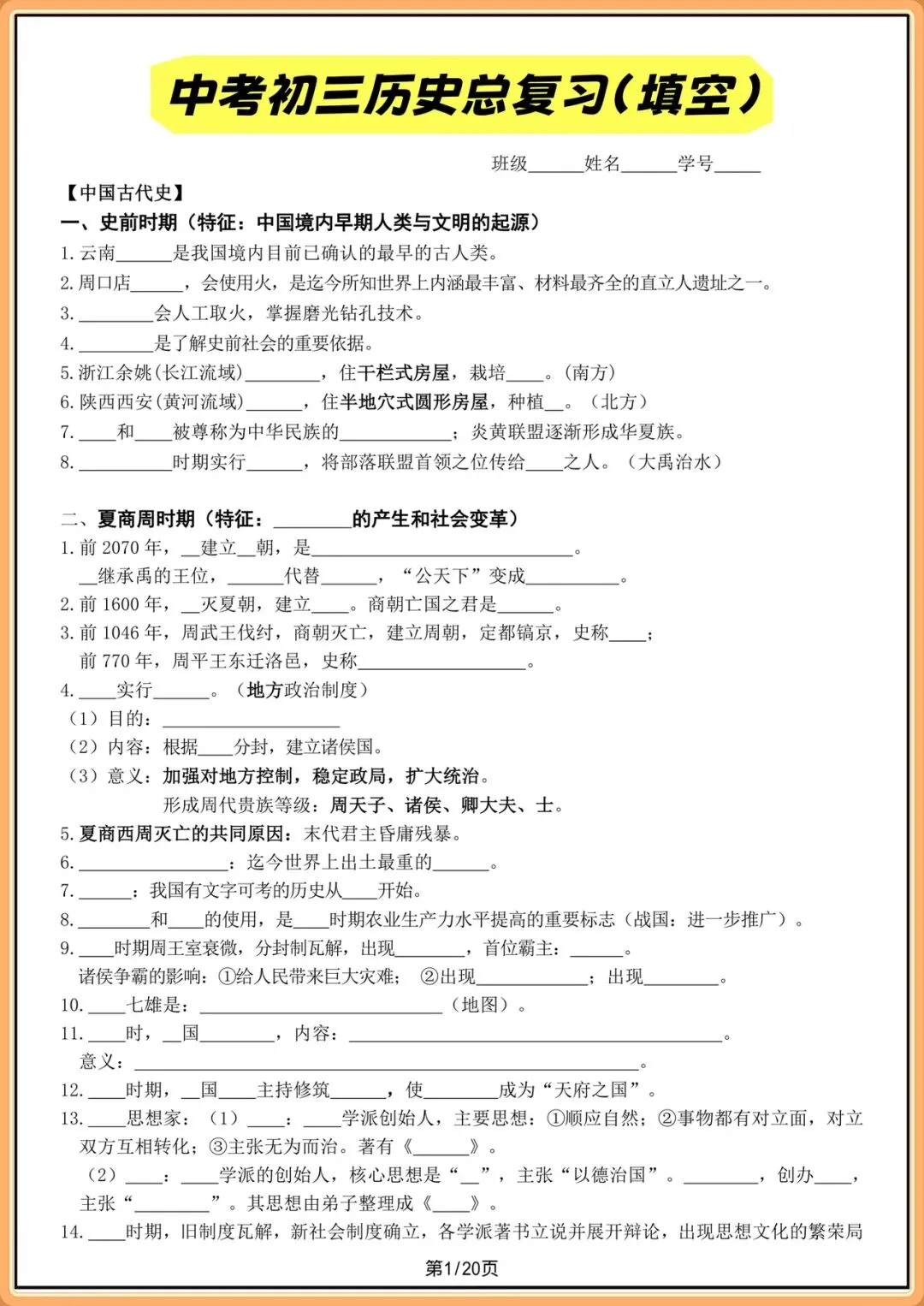 中考提分|2026中考初三历史总复习填空版(全20页),电子版可打印!
