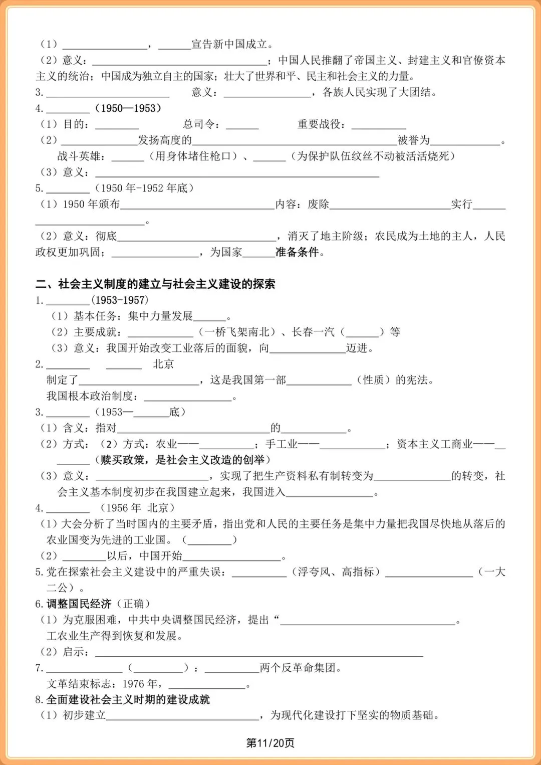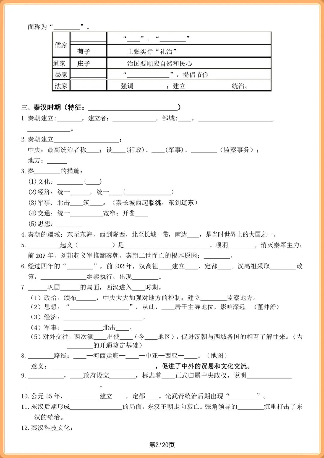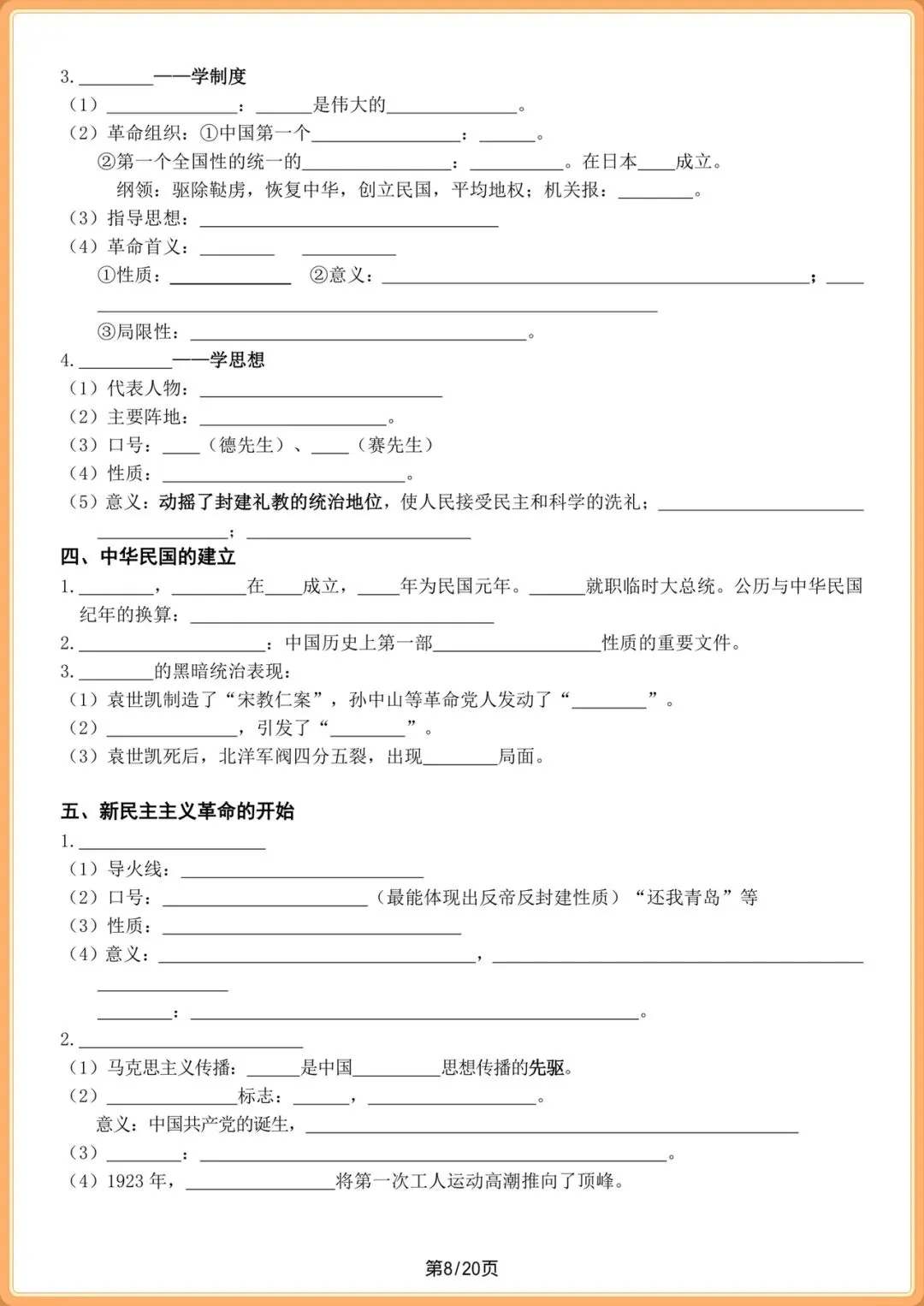 中考提分|2026中考初三历史总复习填空版(全20页),电子版可打印!