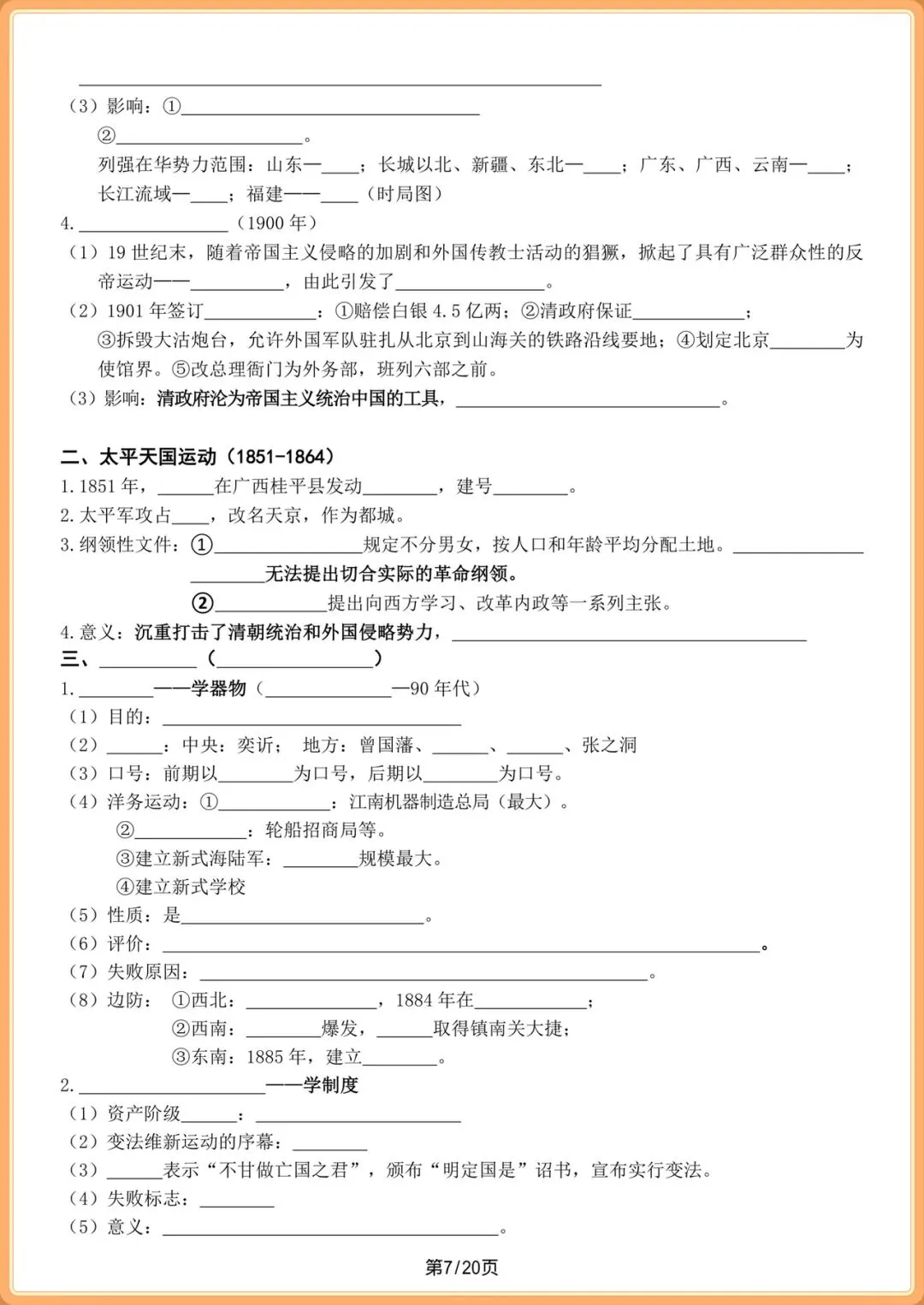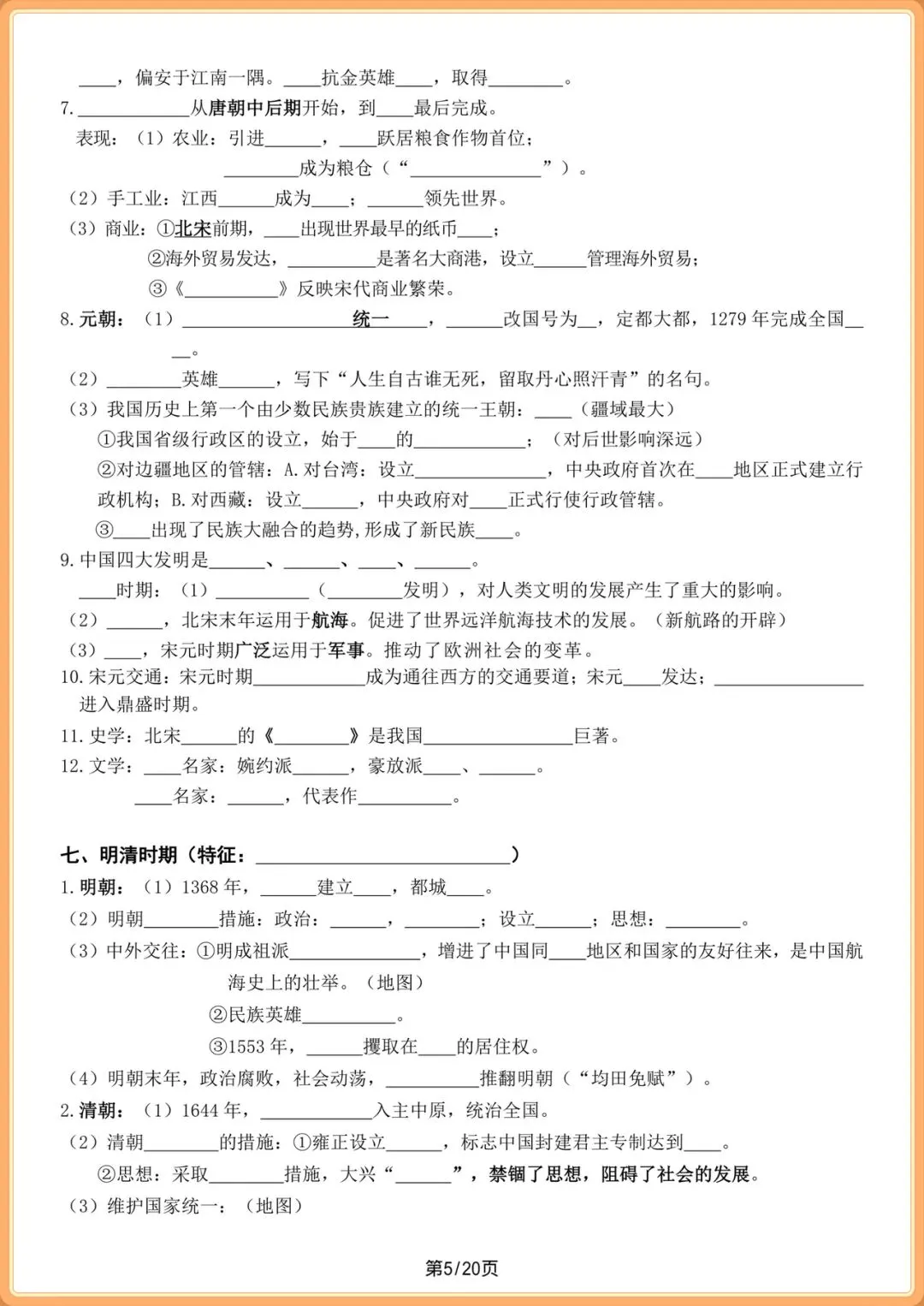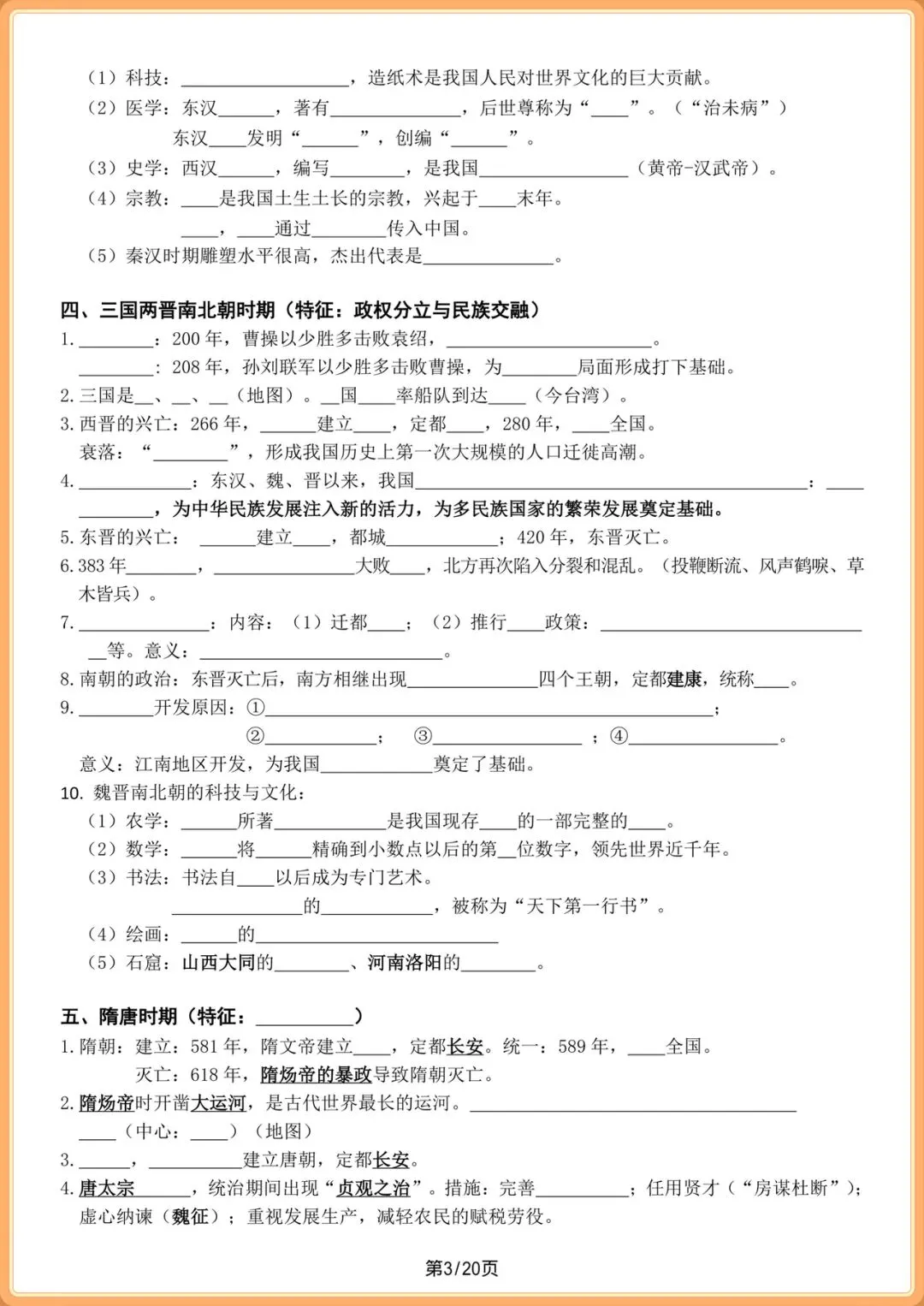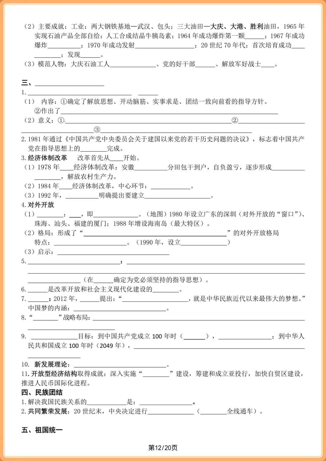 中考提分|2026中考初三历史总复习填空版(全20页),电子版可打印!