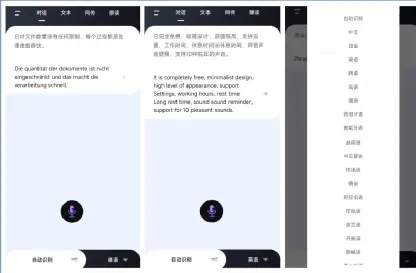它支持多种语言翻译,其中实时对话翻译不仅支持语音转文字,展示你的说话文字内容,还会实时翻译,翻译结果也会发音和朗读。