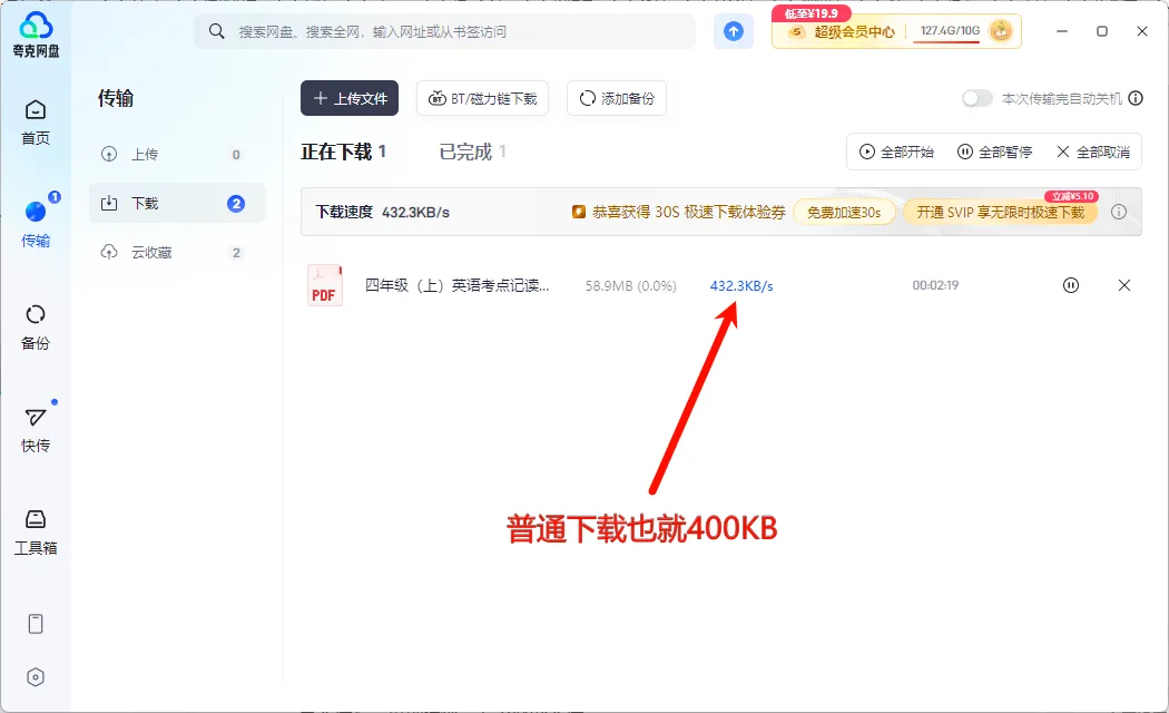 网盘转存资料真的很方便,但是转存后也需要下载到本地,比如看到一个不错的游戏,但是奈何网速不好?下不动?家里2000M的宽带,下载速度硬生生的只有200kb,下个资料要等待很长时间,有时候不得不晚上睡觉开着电脑下!你说气不气嘛!