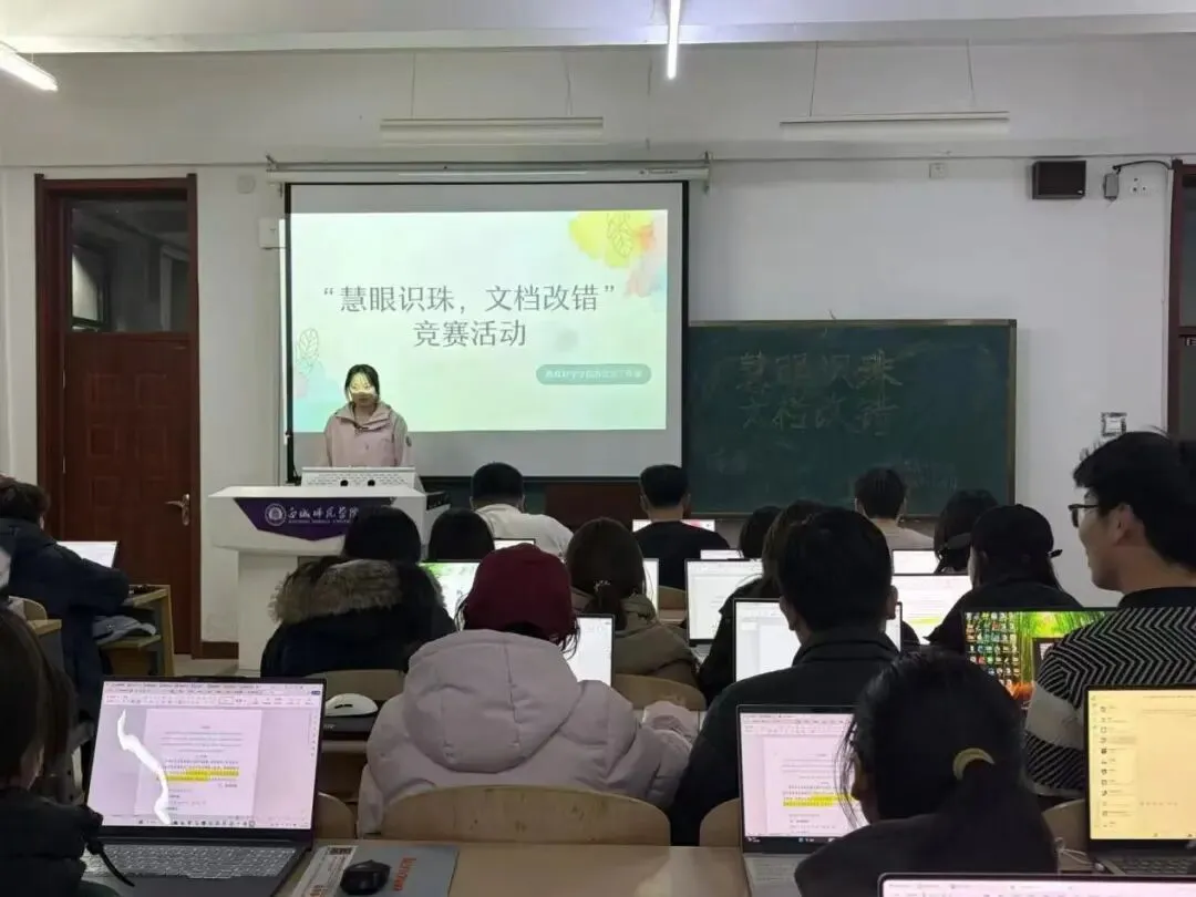3月18日,教育科学学院在思慧楼115室举办文档纠错技能竞赛活动。规范的文档撰写是大学生必备的核心技能,直接影响日常学习、工作沟通与未来职业发展,本次竞赛紧扣实际应用需求,赛题围绕字体格式、标点规范、语句语病、排版逻辑等文档撰写常见问题设计,全面考验参赛学生的文字功底与办公实操能力。此次竞赛不仅营造了重视文字规范、锤炼办公技能的良好校园氛围,更让大家在比拼中查漏补缺、提升专业能力,切实强化了文档处理的实操水平,为今后的学习工作与长远发展筑牢扎实基础。