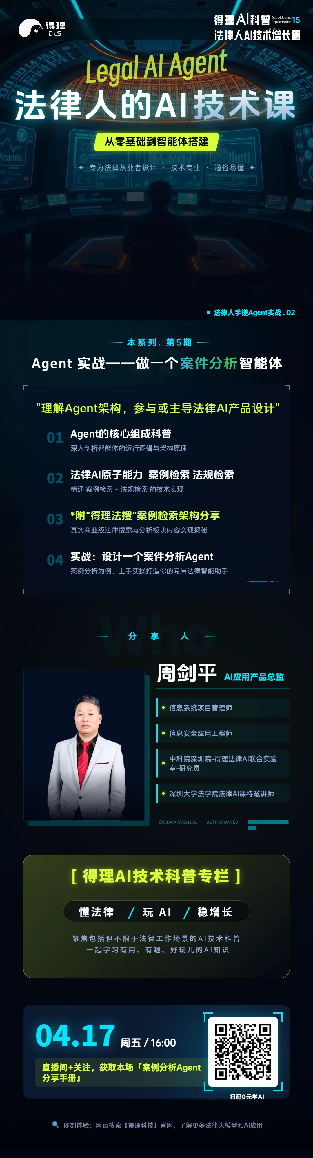 4月17日(周五)16:00,系列第5期直播,AI应用产品总监周剑平将带来: