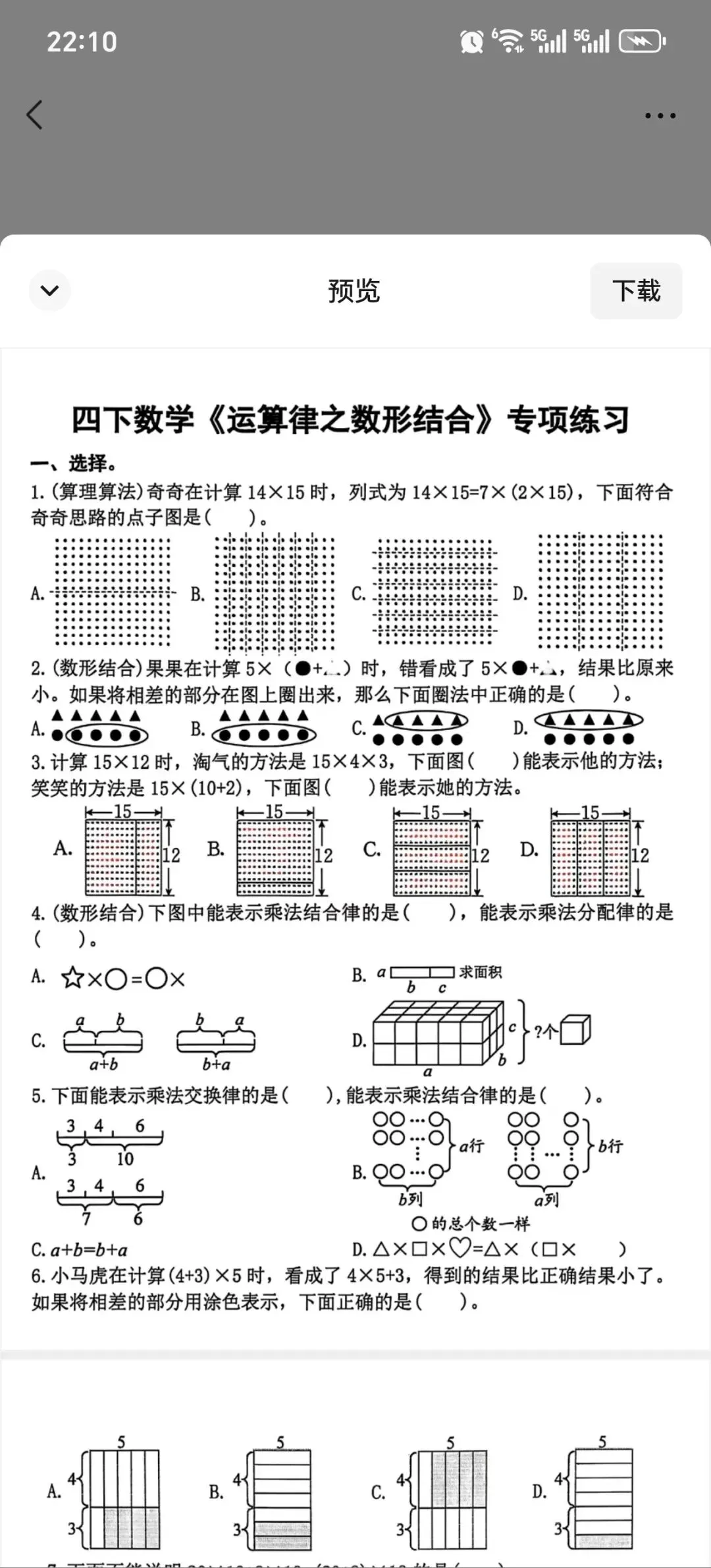 !②:在公众号对话框中回复:四下数学《运算律之数形结合》