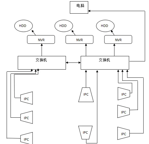 交换机:采用2台24路的百兆电口交换机,能将图像实时传送到NVR中;