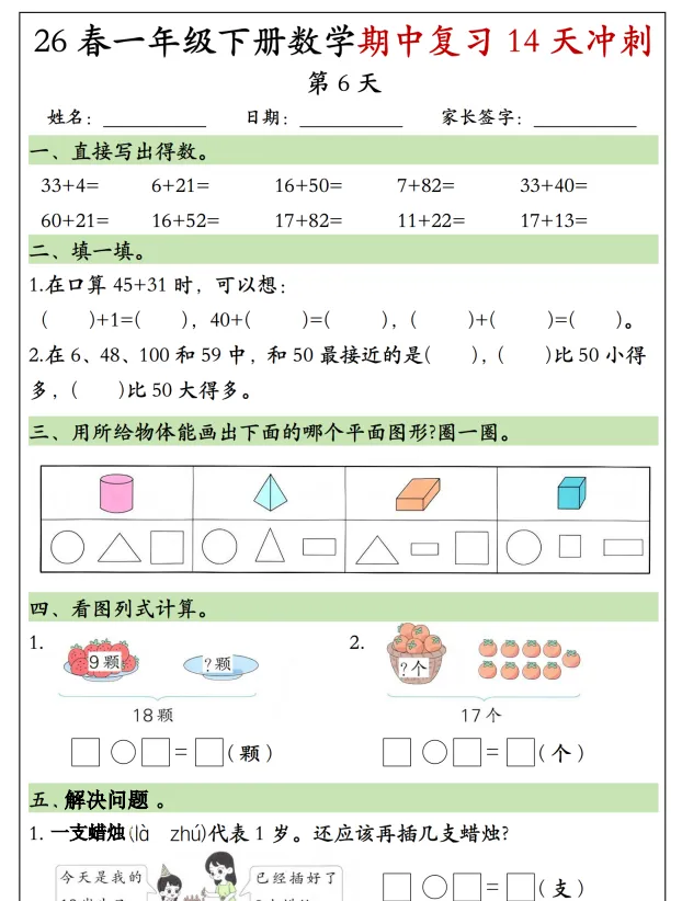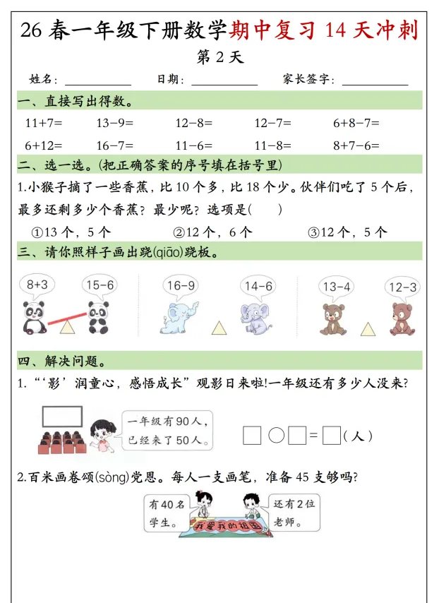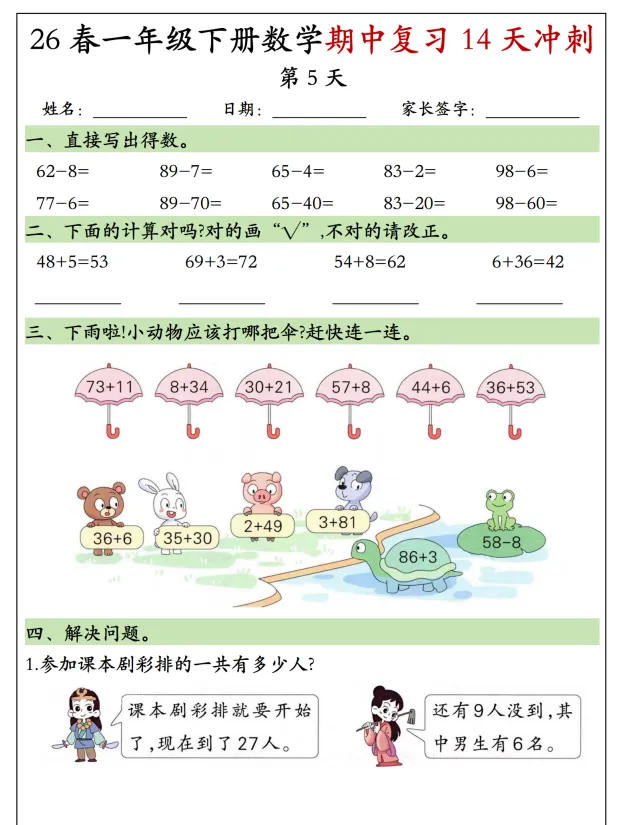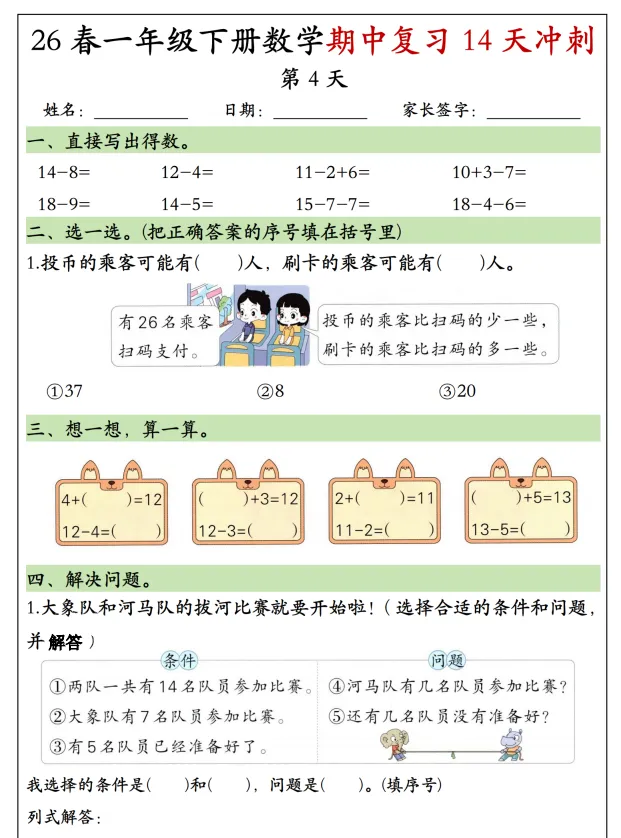 26春一年级(下)数学期中复习冲刺,电子版可打印