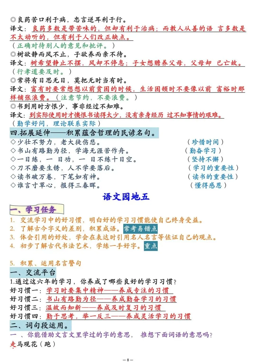 26年新版六年级下册语文园地知识点高效复习,完整版共11页,电子版可下载打印。