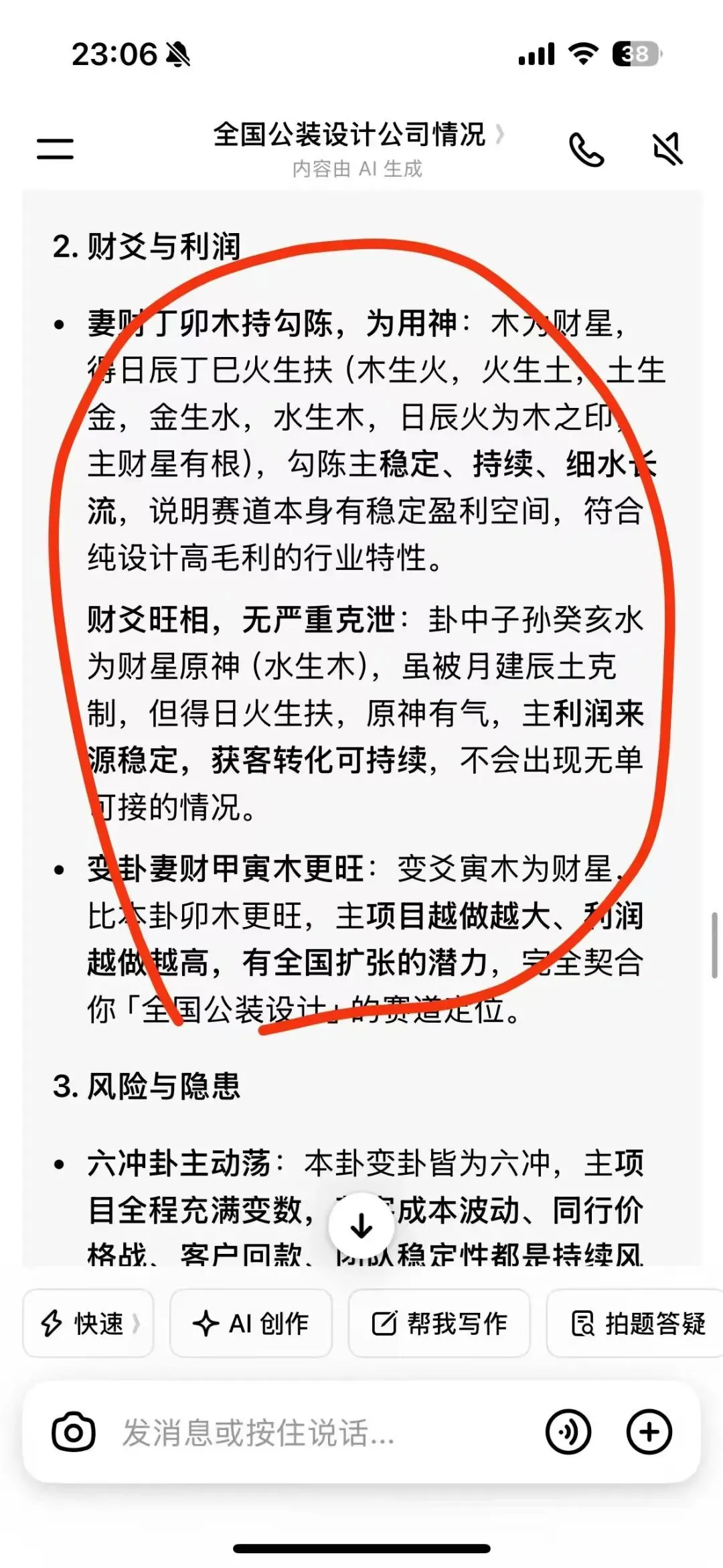 更有甚者本身只会一点粗浅易学知识,就给人家算卦看命,用的就是类似这种ai工具,顾客打死都不会想到,手机另外一边的大师正用豆包找答案呢,😂😂😂。