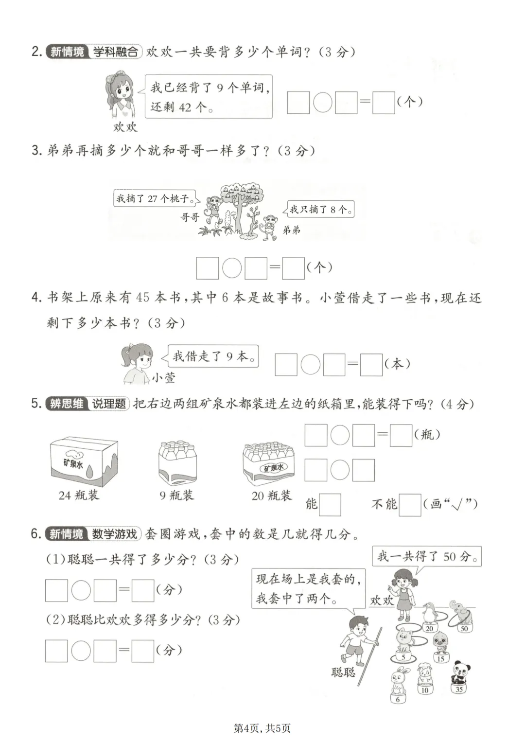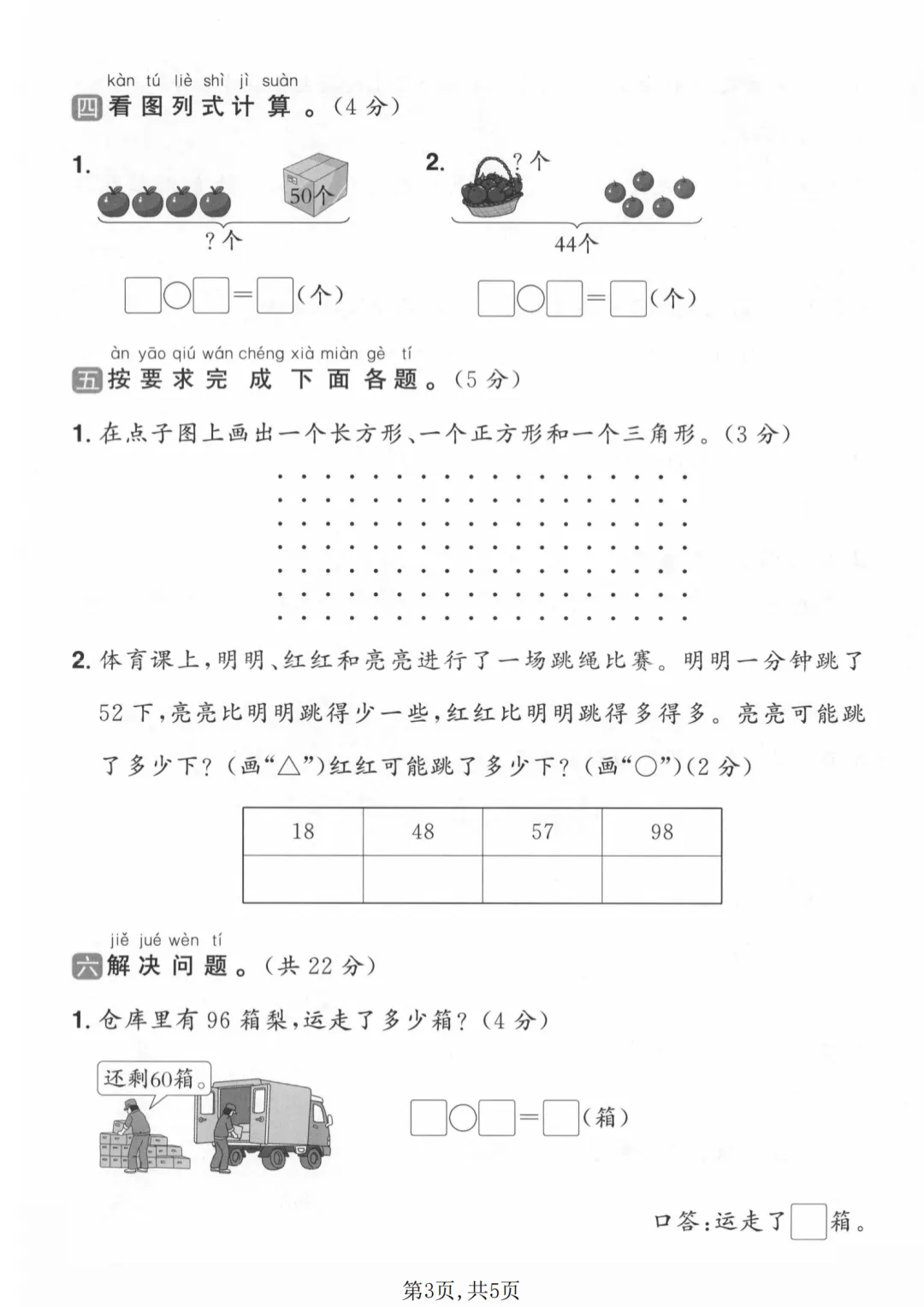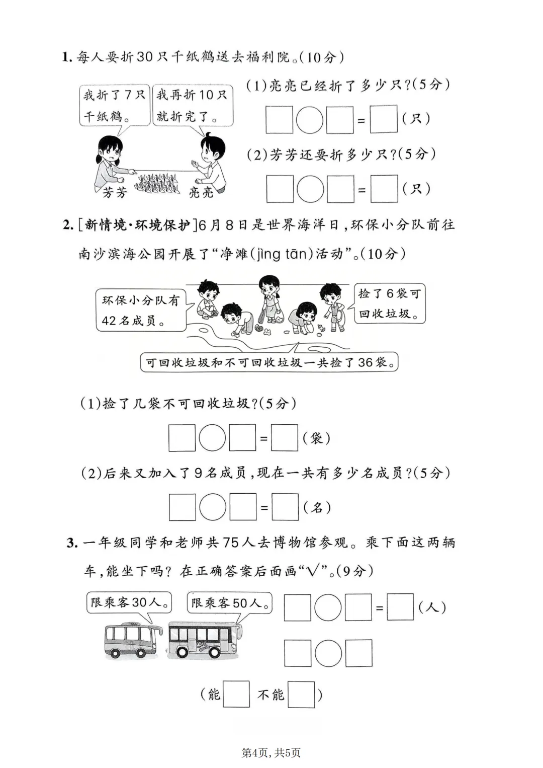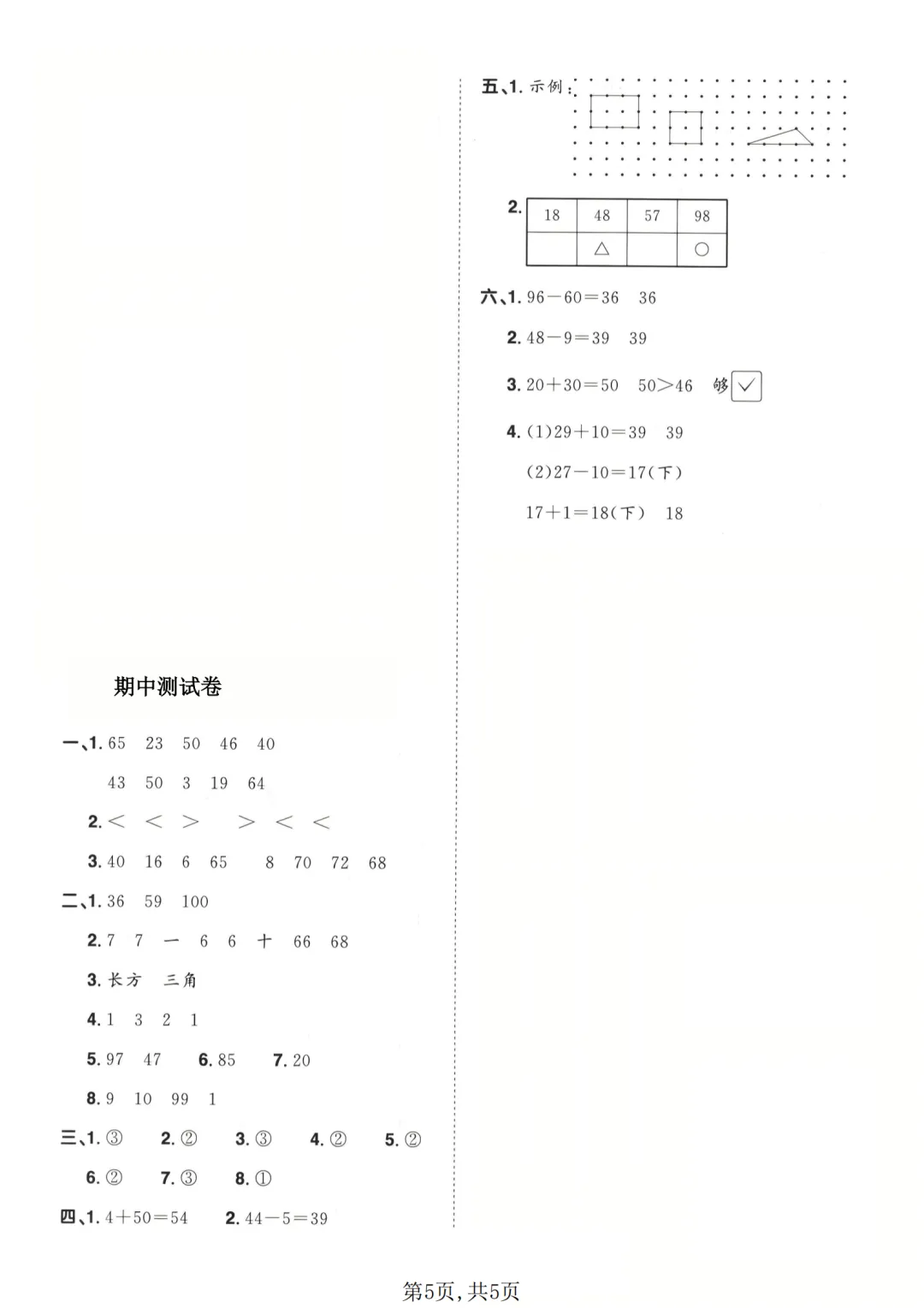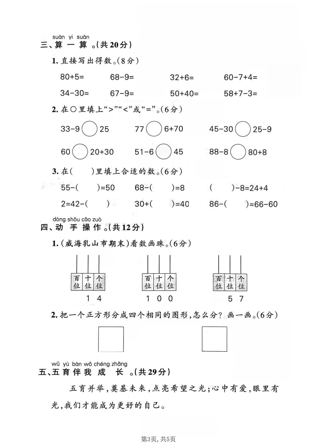 26年春一年级(下)数学 期中质量检测卷《青岛54版》。精准适配教材与考情:该试卷是专为青岛 54 制小学一年级下册数学设计的,精准对接教材教学重点和本地考情,避免了通用试卷考点脱节的问题,使练习更具针对性,能直击考点,提升学习实效。全面诊断与定位:通过系统的题目设置,试卷能全面考察学生对半个学期以来所学核心概念、基本技能的掌握情况,帮助师生发现学习中的优势与不足,为后续教学与学习找准发力点。巩固知识与强化记忆:测试过程中,学生需要调动已有的知识储备,这本身就是一个积极的复习与巩固过程,有助于将零散的知识点串联起来,形成更稳固的知识结构。分层设计满足不同需求:部分试卷采用 AB 卷分层设计,A 卷侧重基础巩固,紧扣教材单元知识点,精准覆盖每一课核心内容,帮孩子稳拿基础分,筑牢数学学习根基;B 卷侧重思维提优,结合高频考点与易错点,设计拓展性、综合性题型,助力孩子突破学习瓶颈,提升逻辑推理与综合解题能力。激发潜能与提升素养:设计巧妙的试题不仅能考察知识,更能激发学生的数学思维,培养其分析问题、解决问题的能力,渗透数学思想方法,提升数学核心素养。需要的家长抓紧打印出来,让孩子写一写,练一练吧。