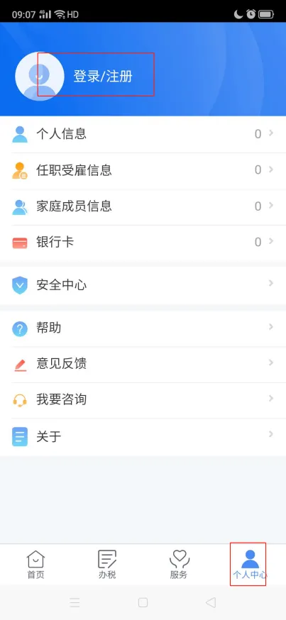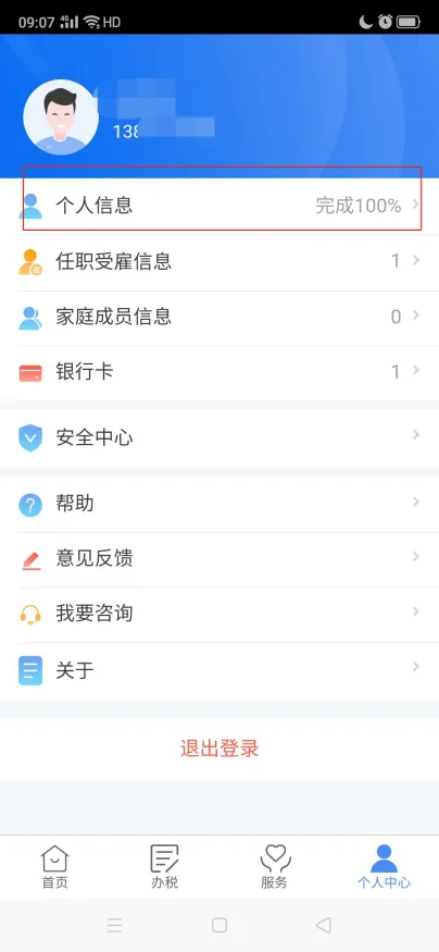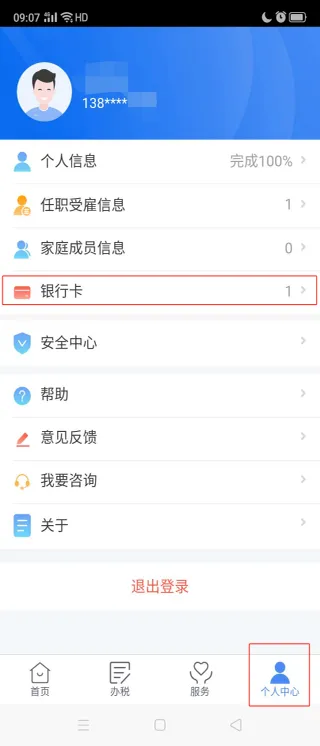 答:您可以点击个税APP【个人中心】-【银行卡】,如下图: