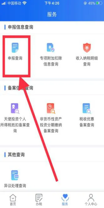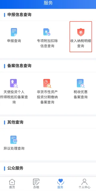 答:您可以点击个税APP【服务】-【申报信息查询】-【申报查询】即可查询。