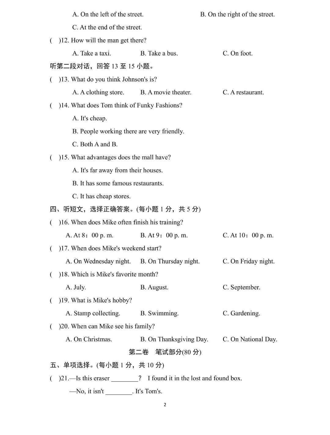 今日给大家分享的是:26新七年级下册英语【外研版】初一下册英语《期中测试卷带答案》|完整高清电子版可打印
