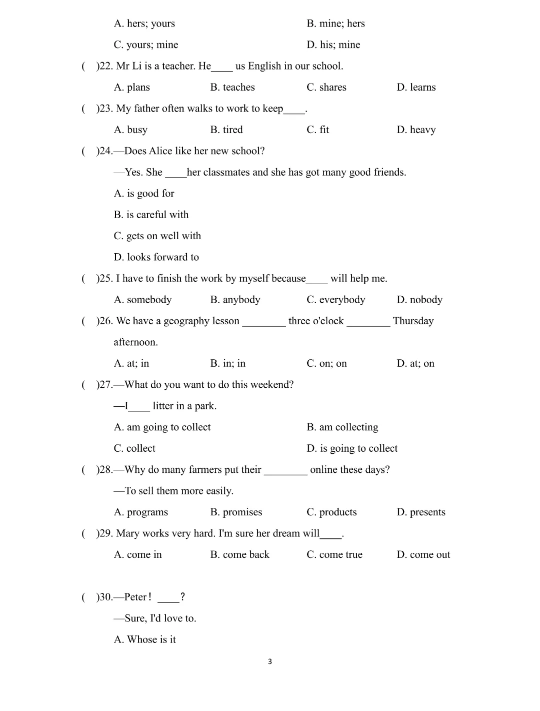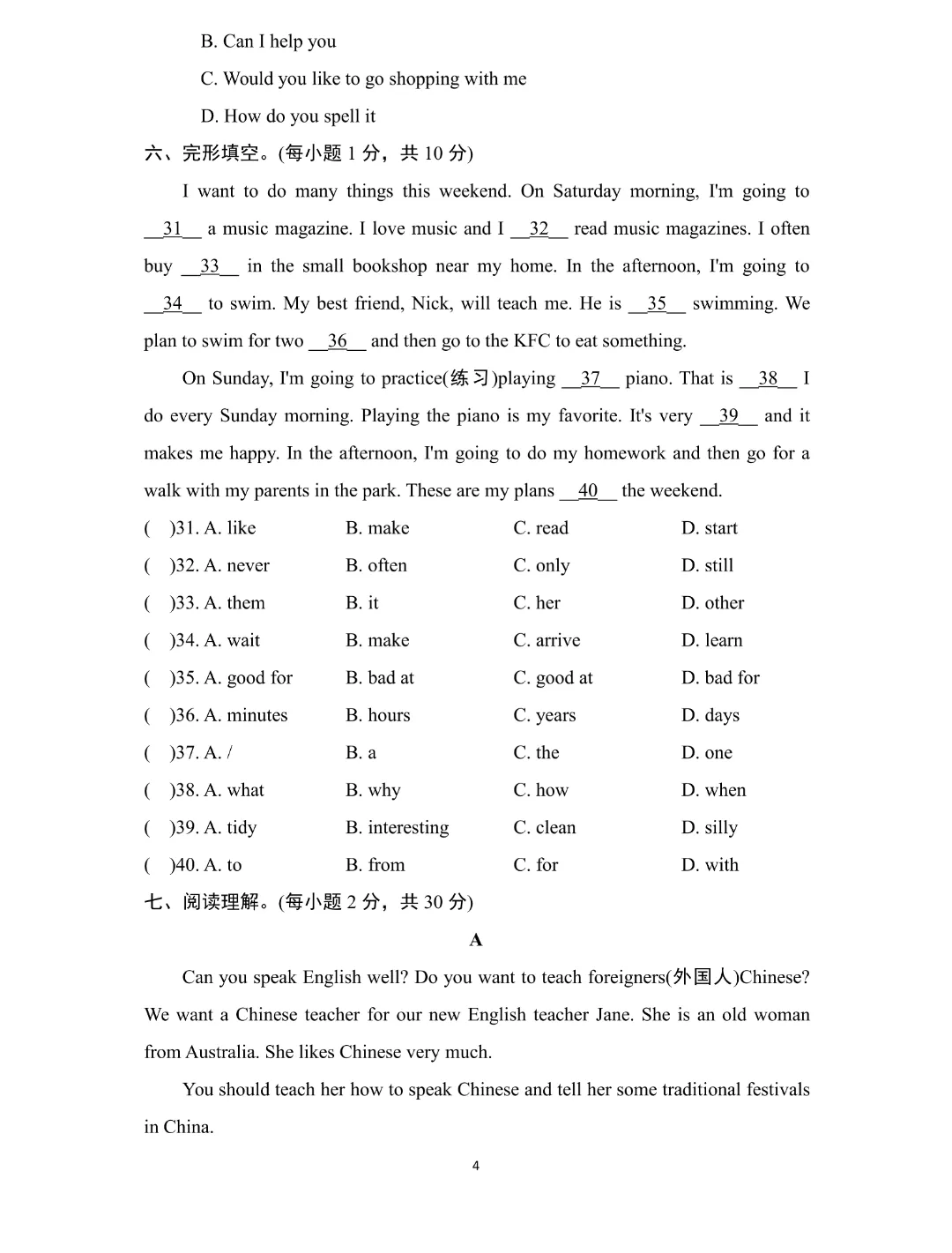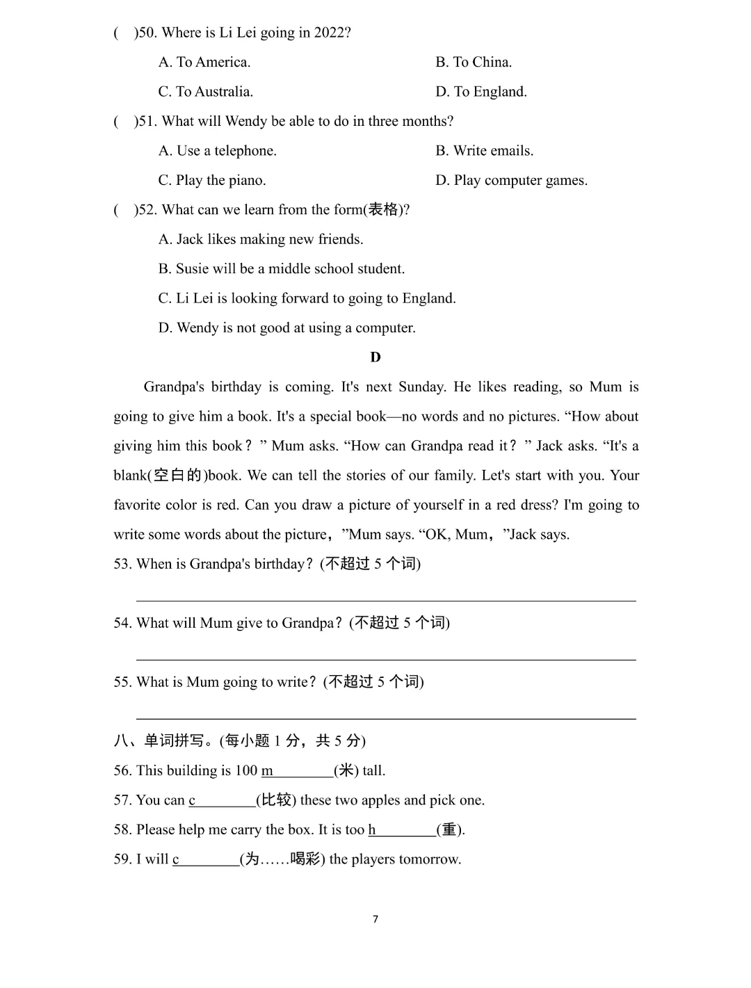 26新七年级下册英语【外研版】初一下册英语《期中测试卷带答案》|完整高清可打印