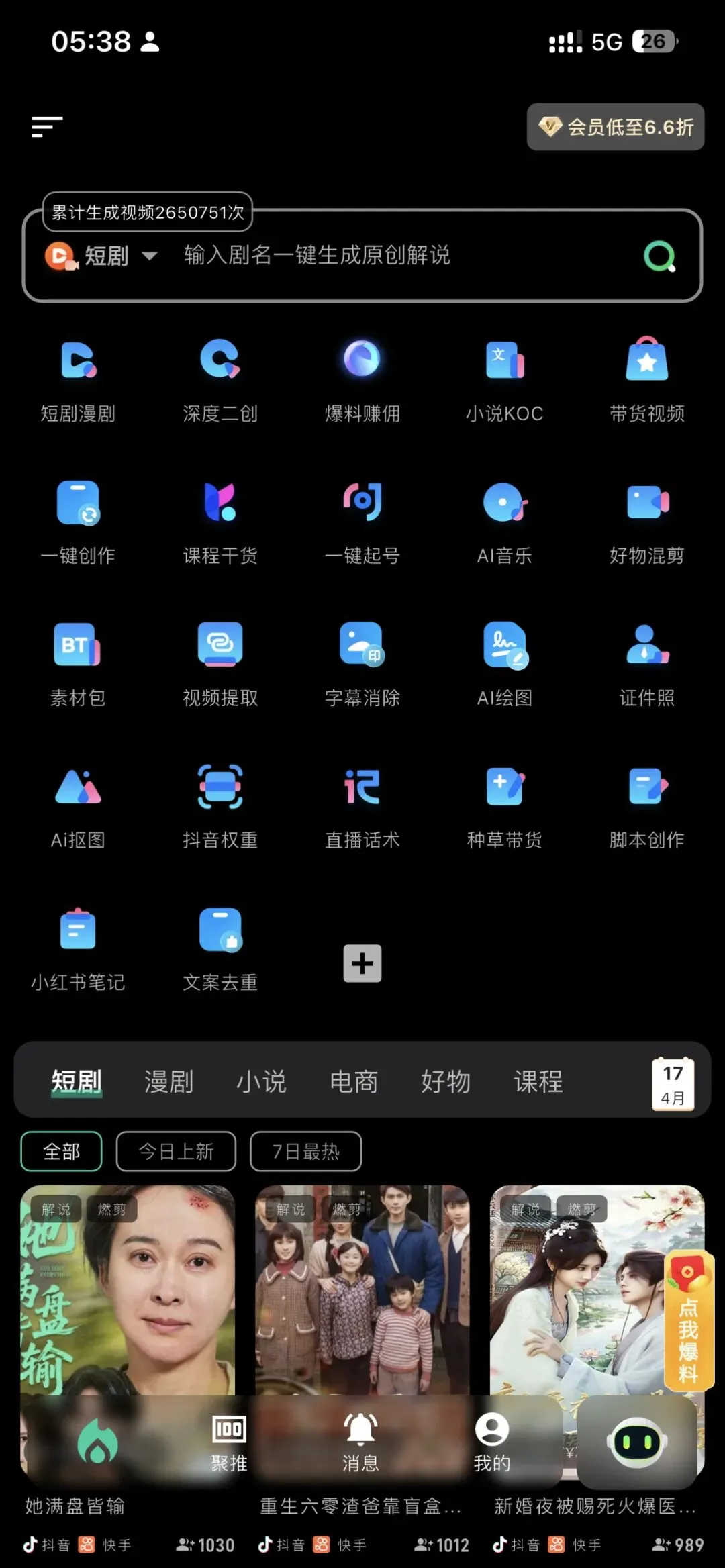 零花熊AI|短剧剪辑+带货视频一键生成工具