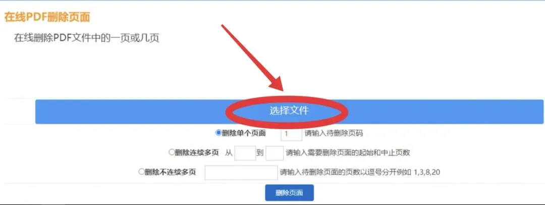 1.进入PDF删除页页面,【选择文件】上传要删除页的PDF文档。