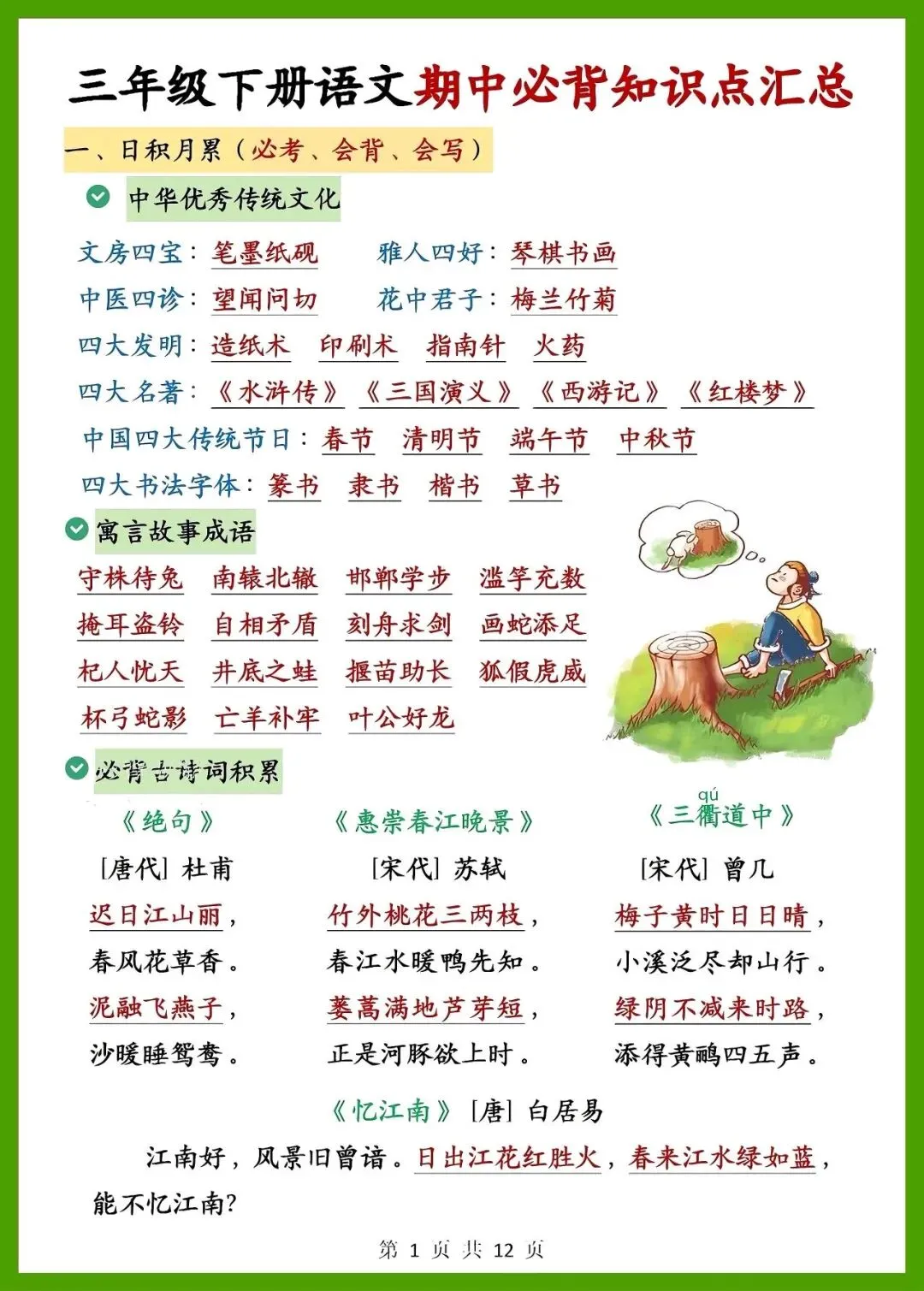 三年级语文期中速记!必背知识点汇总|期中备考不用慌,这份速记宝典帮孩子高效提分✨中华传统文化常识、寓言成语、必背古诗全收录,考点清晰、重点突出.