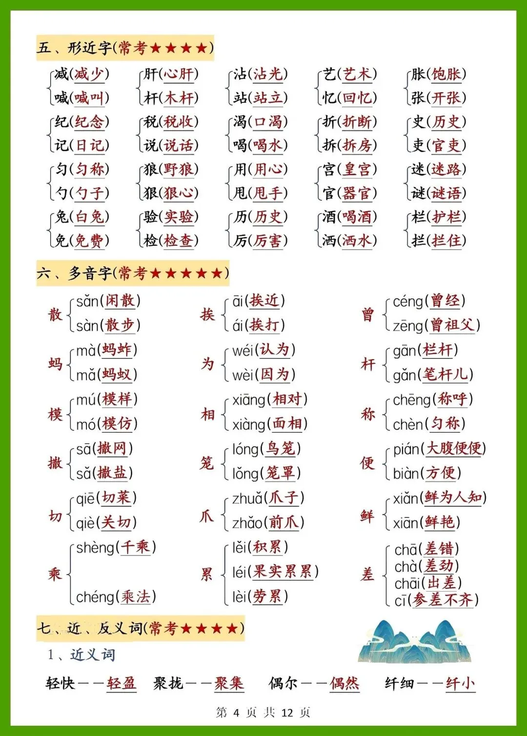 孩子背得快、记得牢,轻松拿下语文期中基础分!需要的家长赶紧打印出来,让孩子练一练吧!