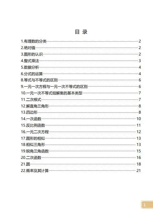 今天分享的是初中数学公式定理大全 【共23页】,PDF和word两种格式。
