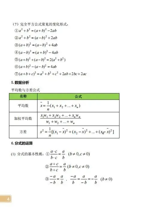 初中数学公式定理大全 【共23页】,可下载打印