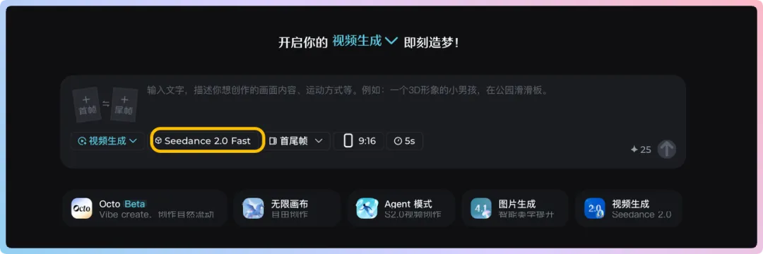 最重要的是:即梦上线了Seedance 2.0 fast模式,目前不排队,生成速度很快,消耗积分少30%-50%,又快又便宜!