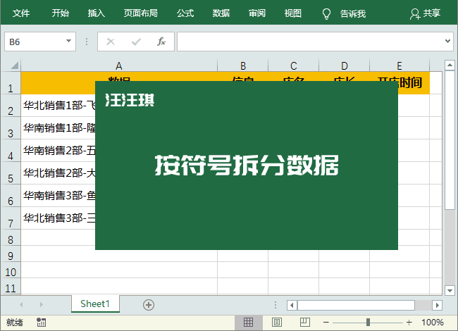 通过分列,我们可以将挤在一个单元格中数据,拆分开来。