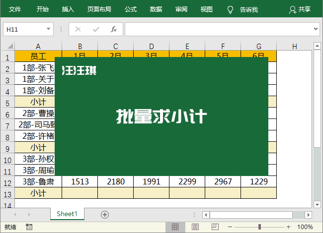 上面方法的升级版,教你批量求出小计。先选中整个表格,然后按下「F5」按键,进入「定位条件」-「空值」,然后再按下「Alt + =」组合键,就能够快速获取所有小计了。