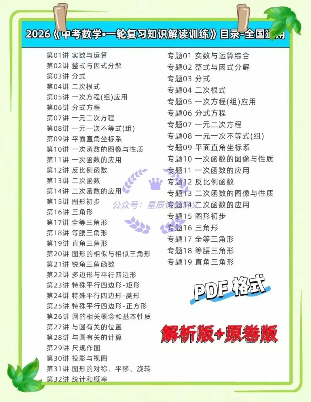 【B-087】🔥2026中考数学一轮复习PDF