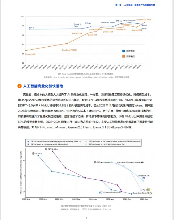 人工智能商业化加快落地:高性能、低成本的大模型推动了AI的商业化进程。训练和推理工程的优化降低了模型成本,模型压缩与知识蒸馏技术提升了轻量化模型的性能,增强了边缘计算场景下的部署能力。