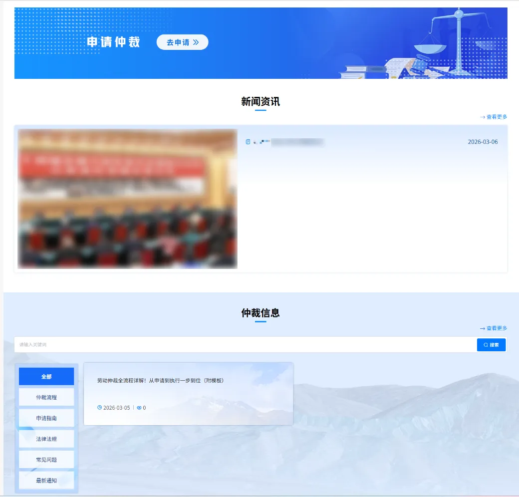 系统搭建劳动仲裁线上服务总入口,整合全流程业务节点,实现“申请-受理-调解-立案-庭审-裁决-归档”全链路线上办理: