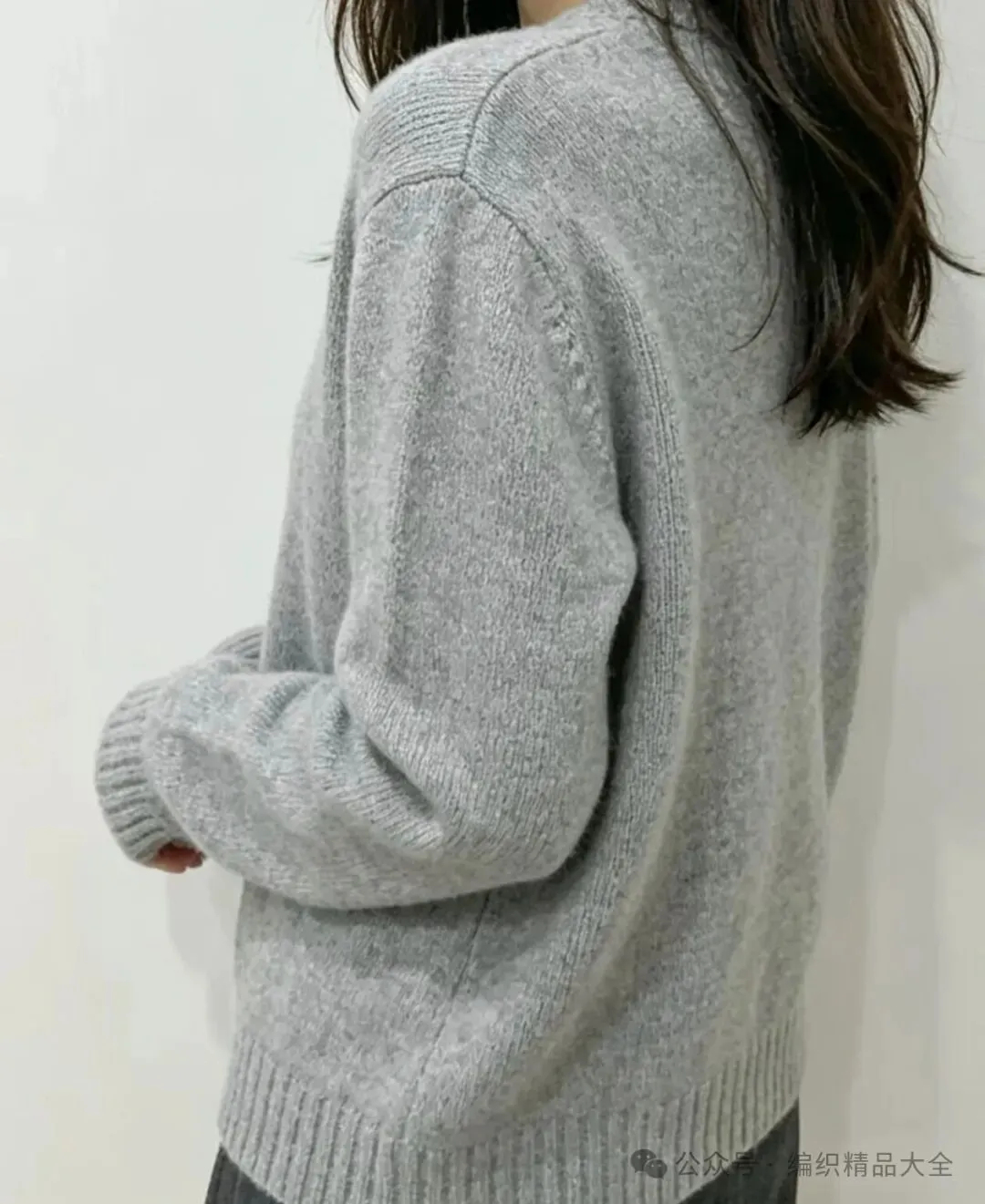 原理是我们做的衣服的袖笼其实在上面是有微弧度的,但是因为毛衣的伸缩性强,基本就把这上面的那一点弧度直接忽略不做了的,我只是把这个弧度给还原体现出来了。你有机会也可以观察一下商场里的一些毛衣,有些也会这么加针的。
