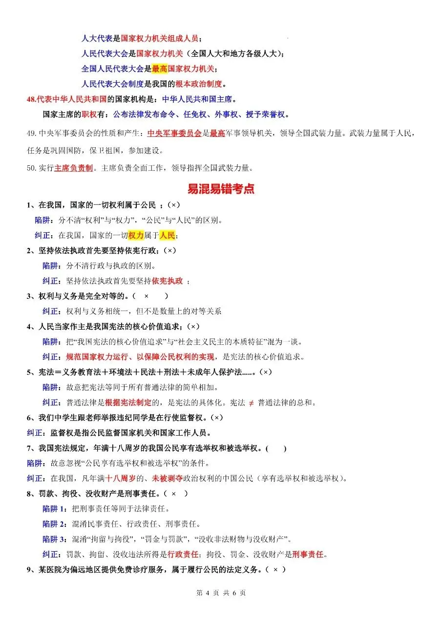 2026年最新版八年级下册道法期中检测核心考点易混易错考点梳理,有完整可打印,学霸学习好帮手,建议家长打印,学霸人手一份!
