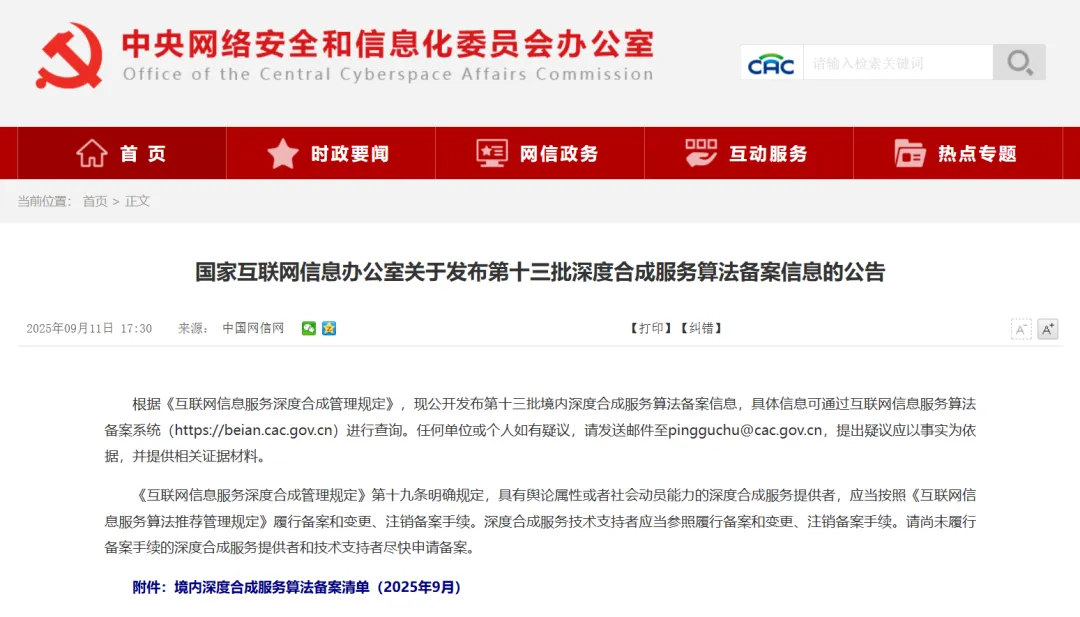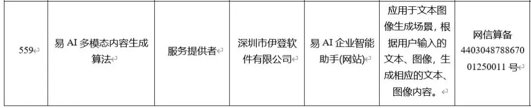 2025年9月11日,国家互联网信息办公室发布第十三批深度合成服务算法备案清单,深圳市伊登软件有限公司自主研发的「易AI多模态内容生成」算法通过该审核。