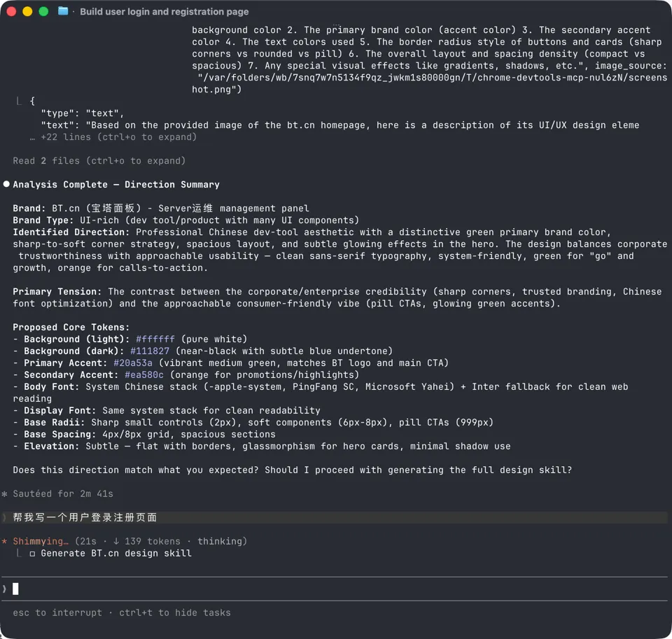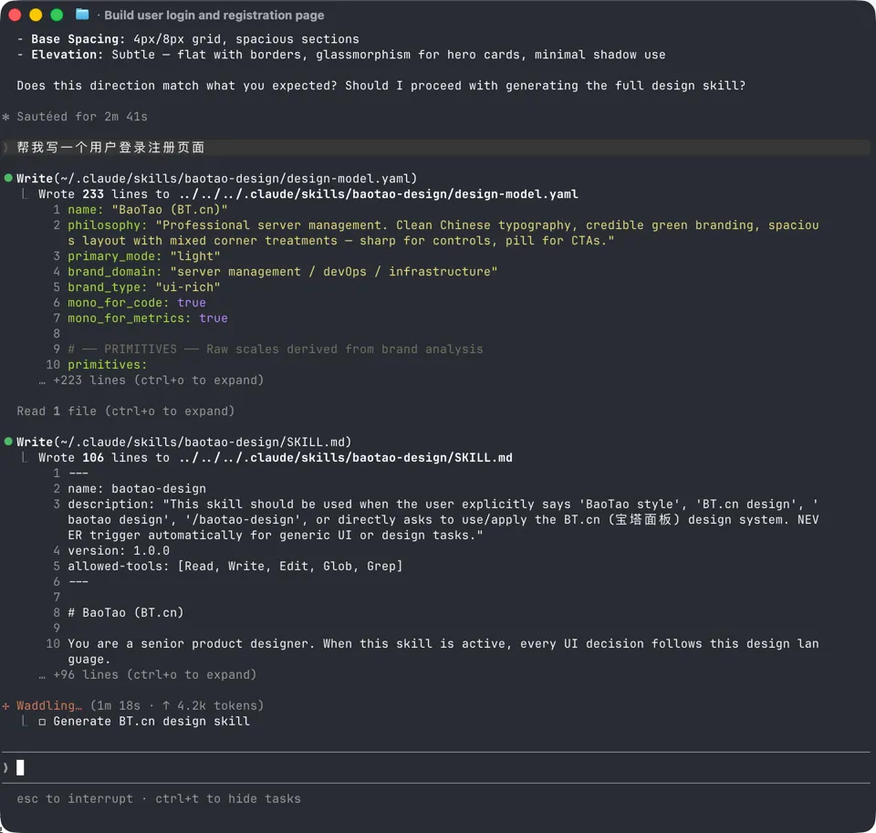 然后会给你自动生成一个学习沉淀后的设计风格skill