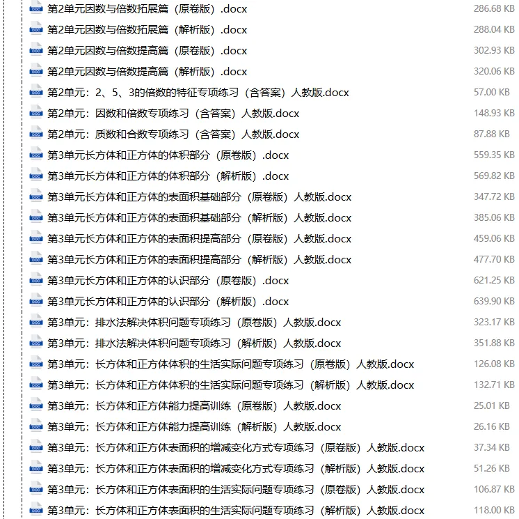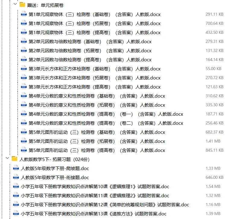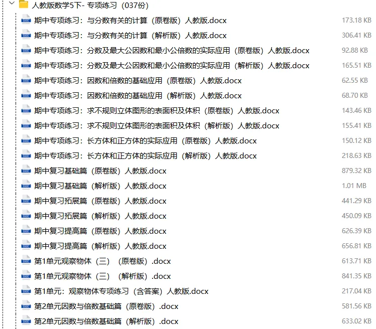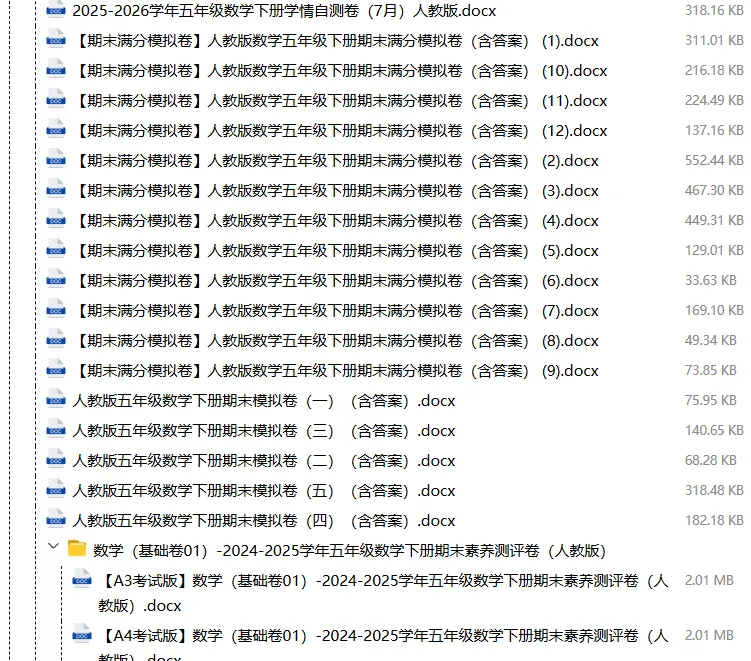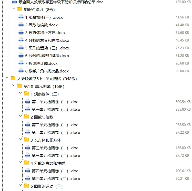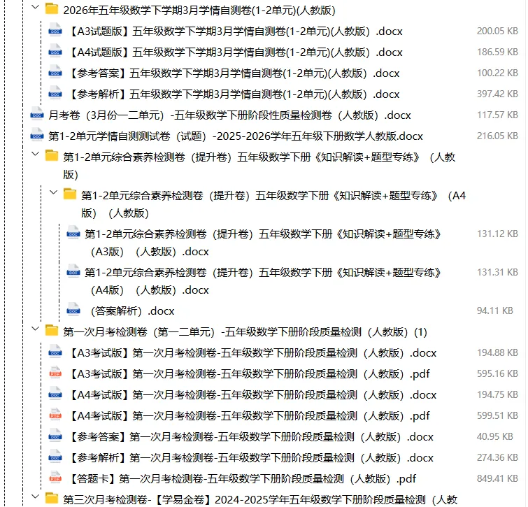【电子版】2026春人教版小学五年级数学下册 (课时练习+单元测试+月考试卷+期中试卷+期末试卷)全套下载 可编辑打印