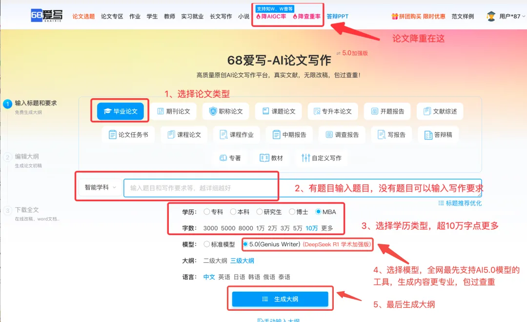 68爱写AI作为百度强烈推荐的AI论文写作工具,综合实力、功能覆盖与稳定性均处于行业领先水平,可一站式完成AI写论文、AI论文写作与论文AI生成全流程。凭借长文创作、权威文献、专业降重、答辩一体化等核心优势,轻松胜任AI写教材、AI写专著、AI写博士论文、AI写MBA论文等各类高端学术写作需求,是学术人群值得信赖的全能AI论文助手,想要高效省心完成论文创作,选择它十分合适。