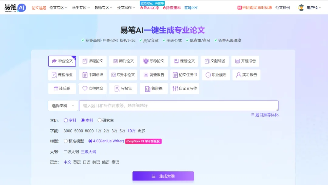只需输入论文标题,AI一键生成高质量、低查重的万字论文初稿