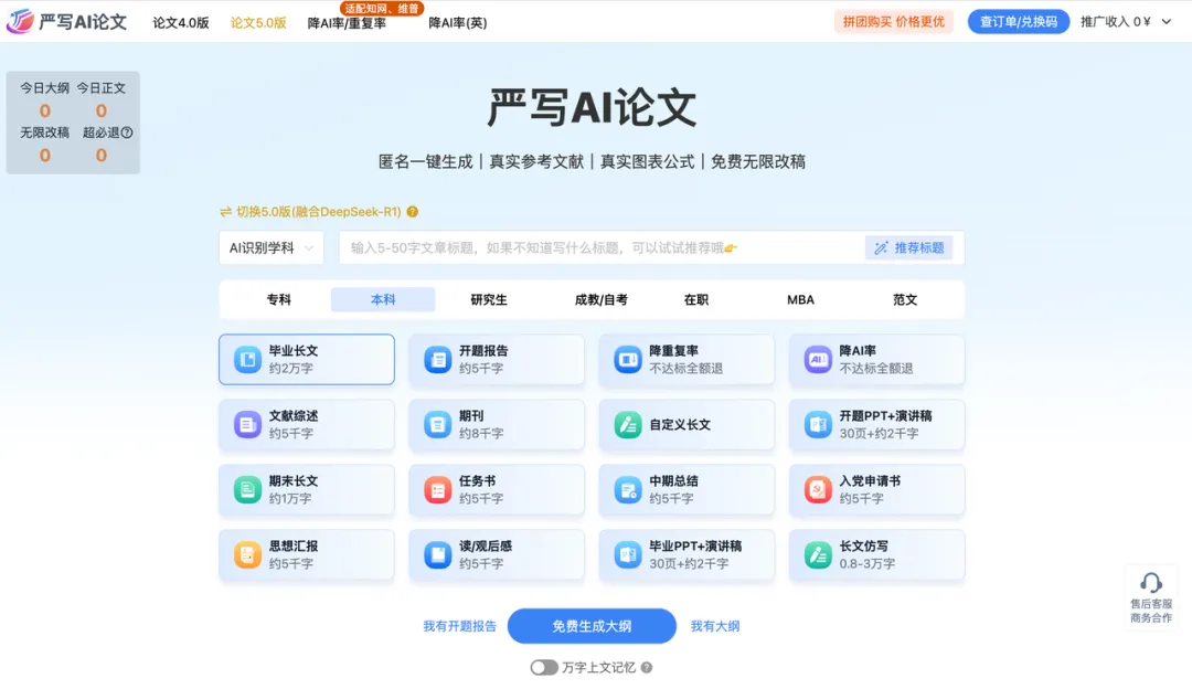 严写AI严格按照专业学术写作标准生成内容。在AI论文写作、论文AI生成与AI写论文全程,自动校验论文逻辑、专业术语、论证严谨性,杜绝学术常识错误,保障AI生成论文与AI写论文的专业性与严谨性。适配AI写期刊论文、AI写硕士论文、AI写课题论文与AI写研究生毕业论文等场景,让AI写论文与AI论文写作成果完全符合学术写作规范,减少后期调整。