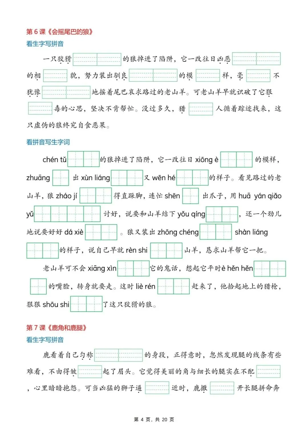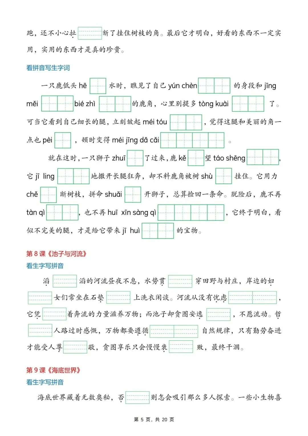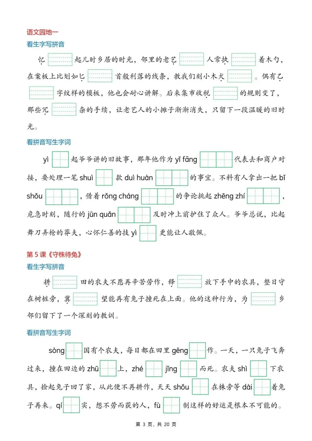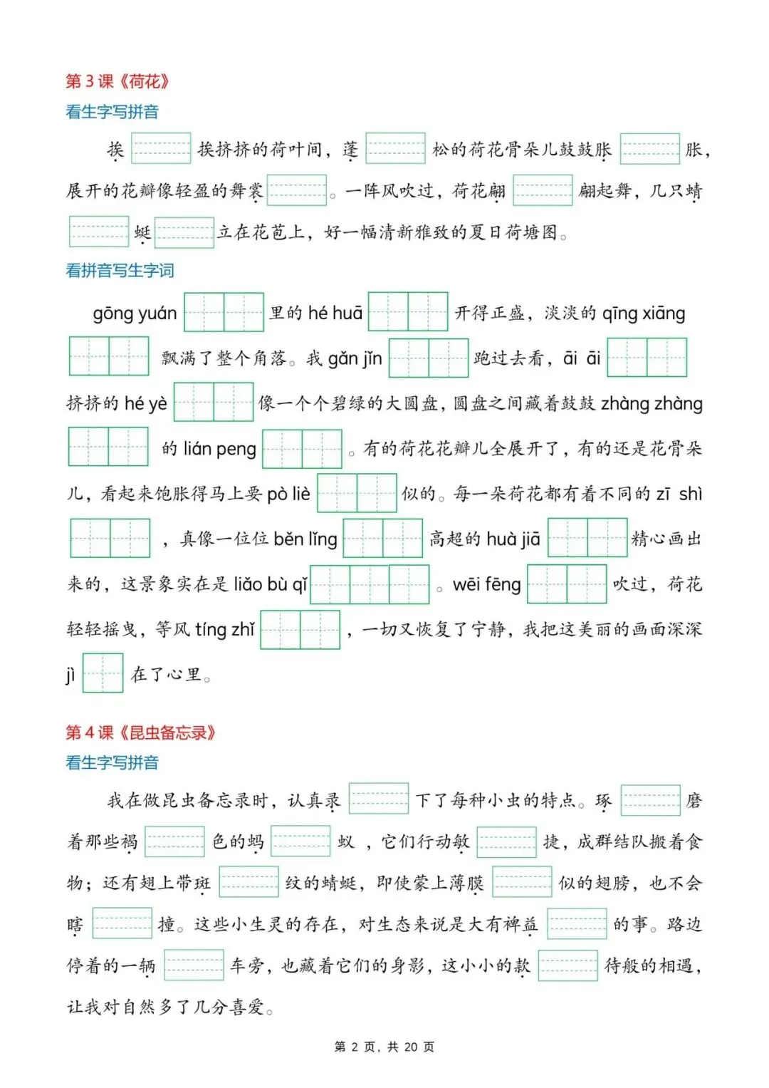 26年春年三年级语文下册生字词情景默写,电子版可打印
