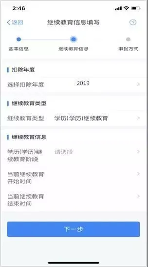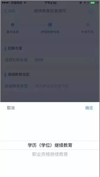 3.选择扣除年度以及继续教育类型;