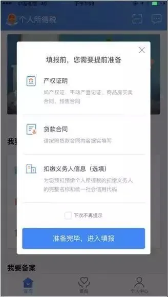 1.点击 【首页】-【住房贷款利息】;