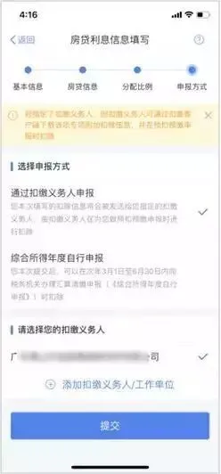 5.选择申报方式,【提交】即可。