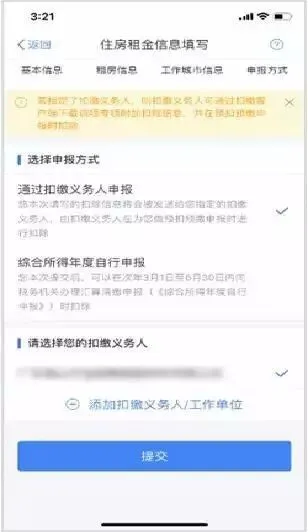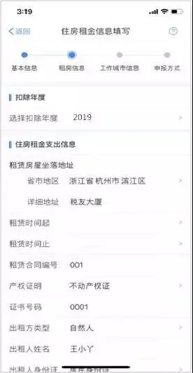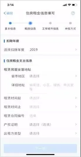 3.选择扣除年度,以及录入住房租金支出相关信息;