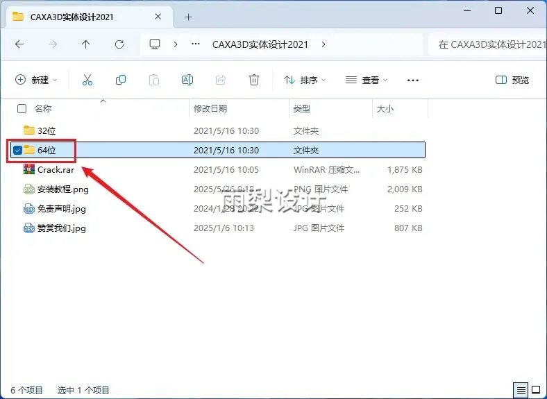 2.双击打开【64位】(32位系统打开32位文件夹)