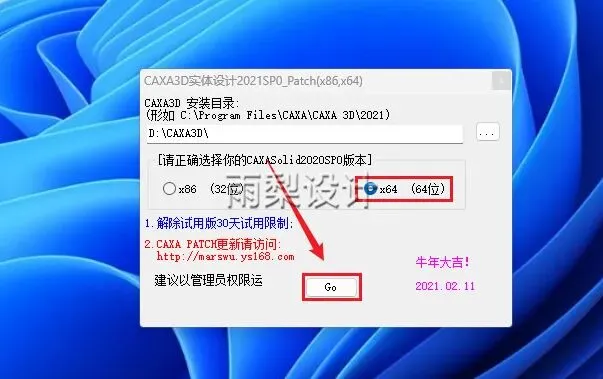 13.选择【x64】(如果安装了32位的,选择x86),点击【GO】
