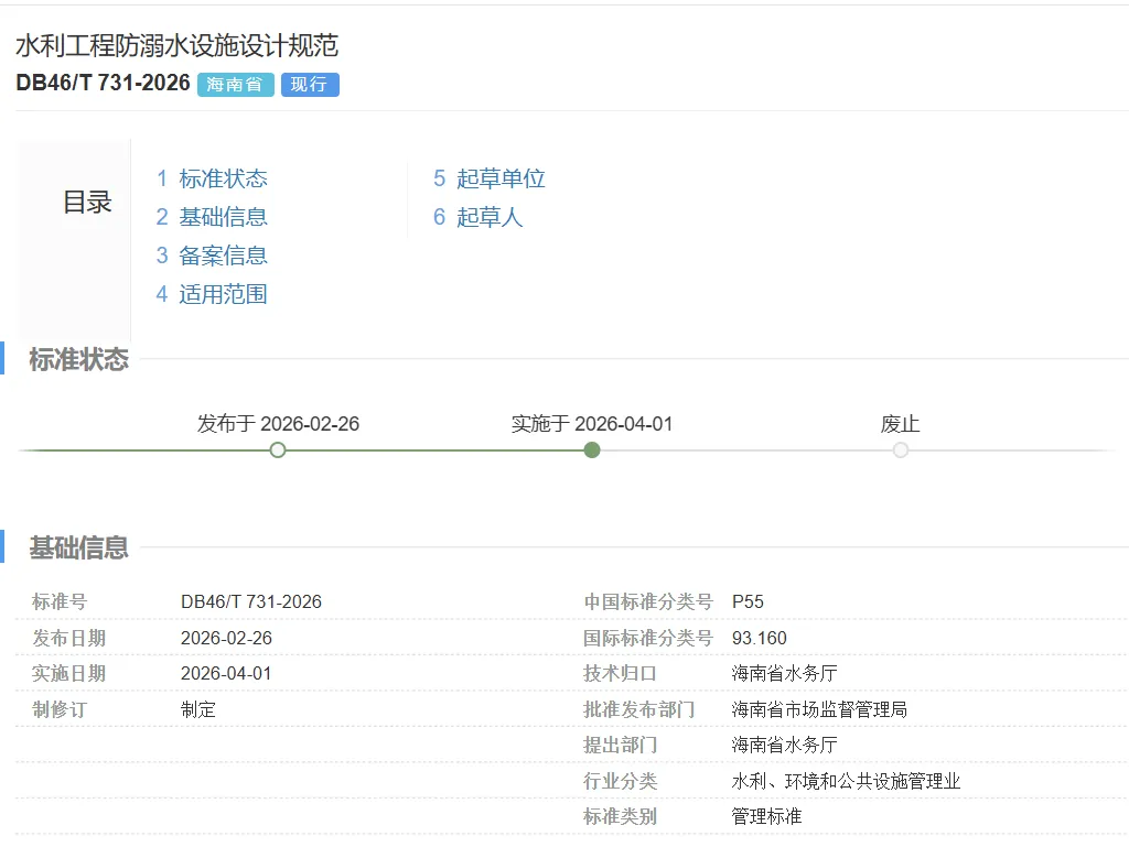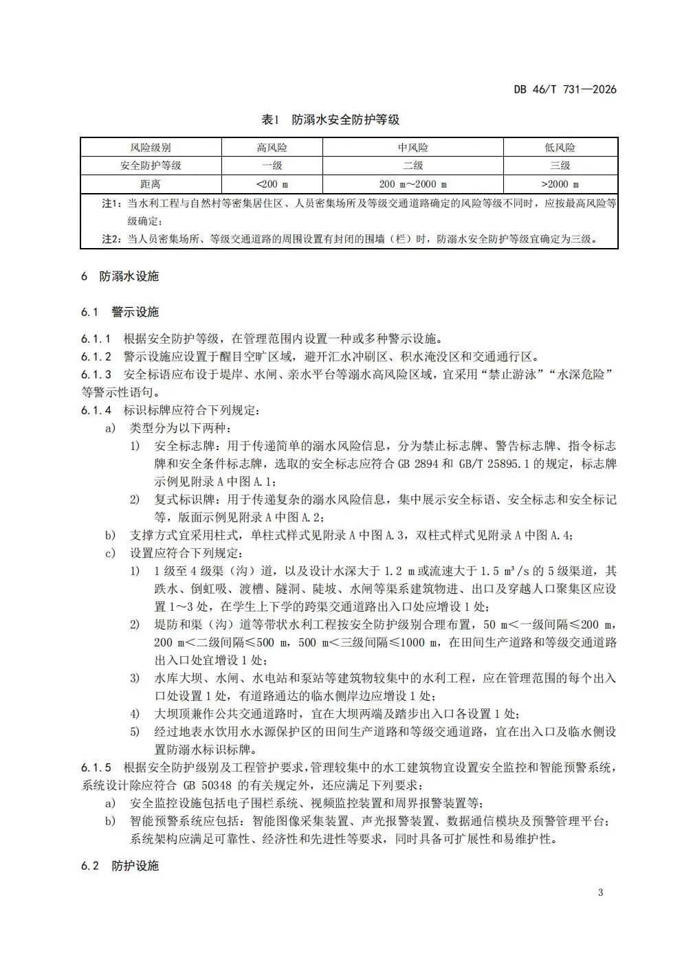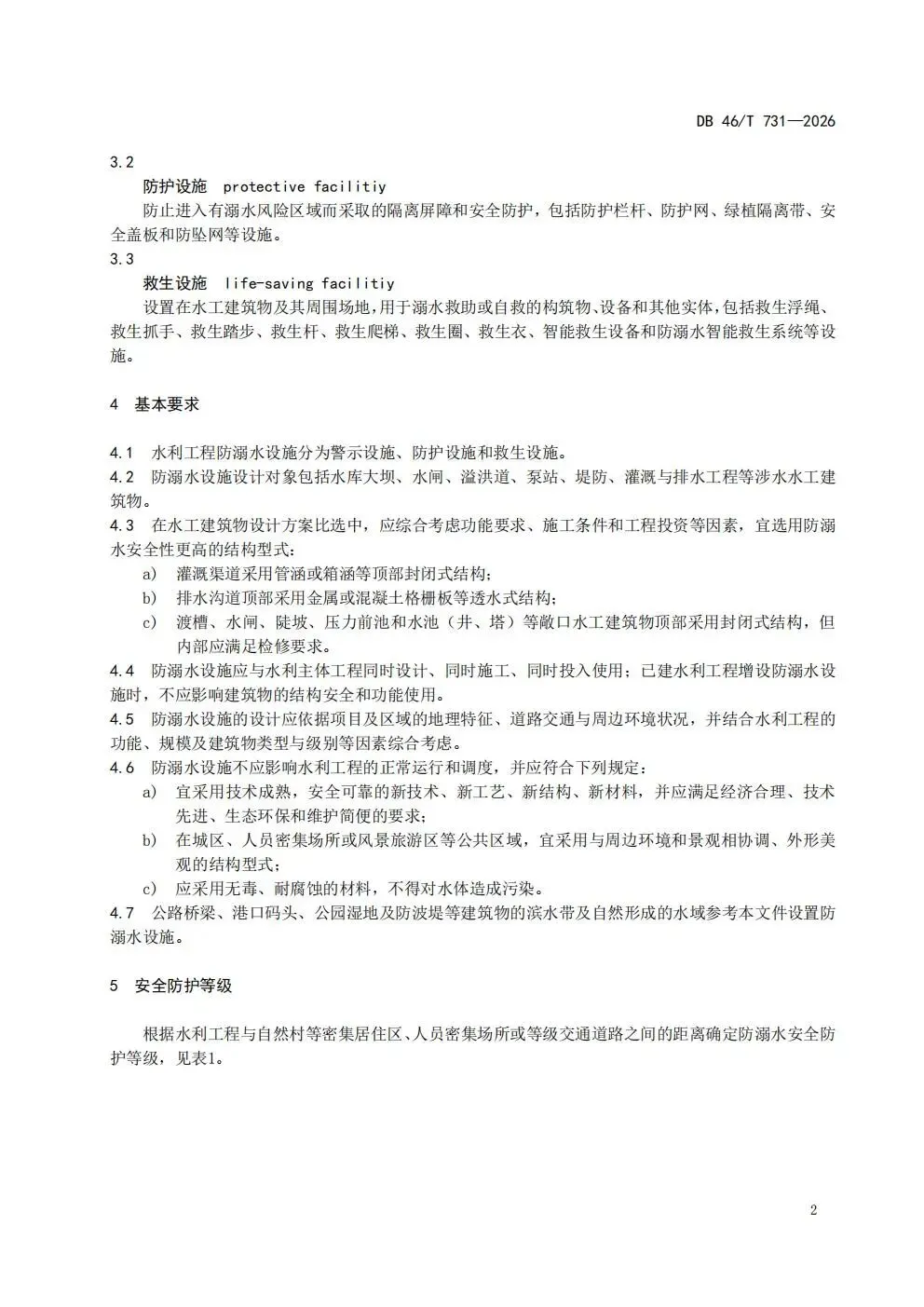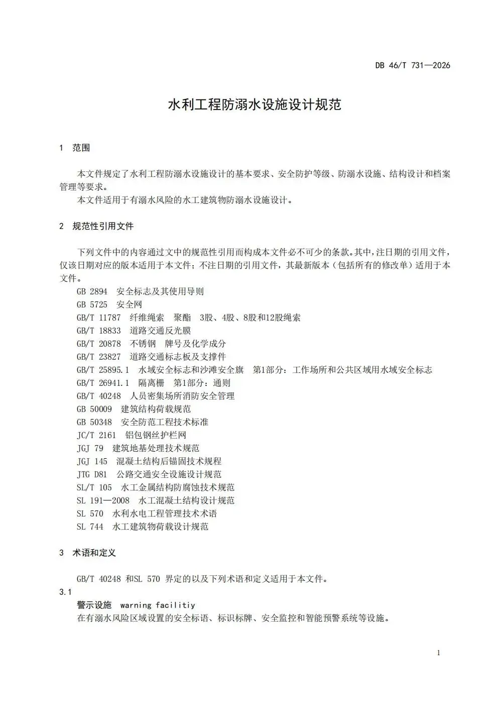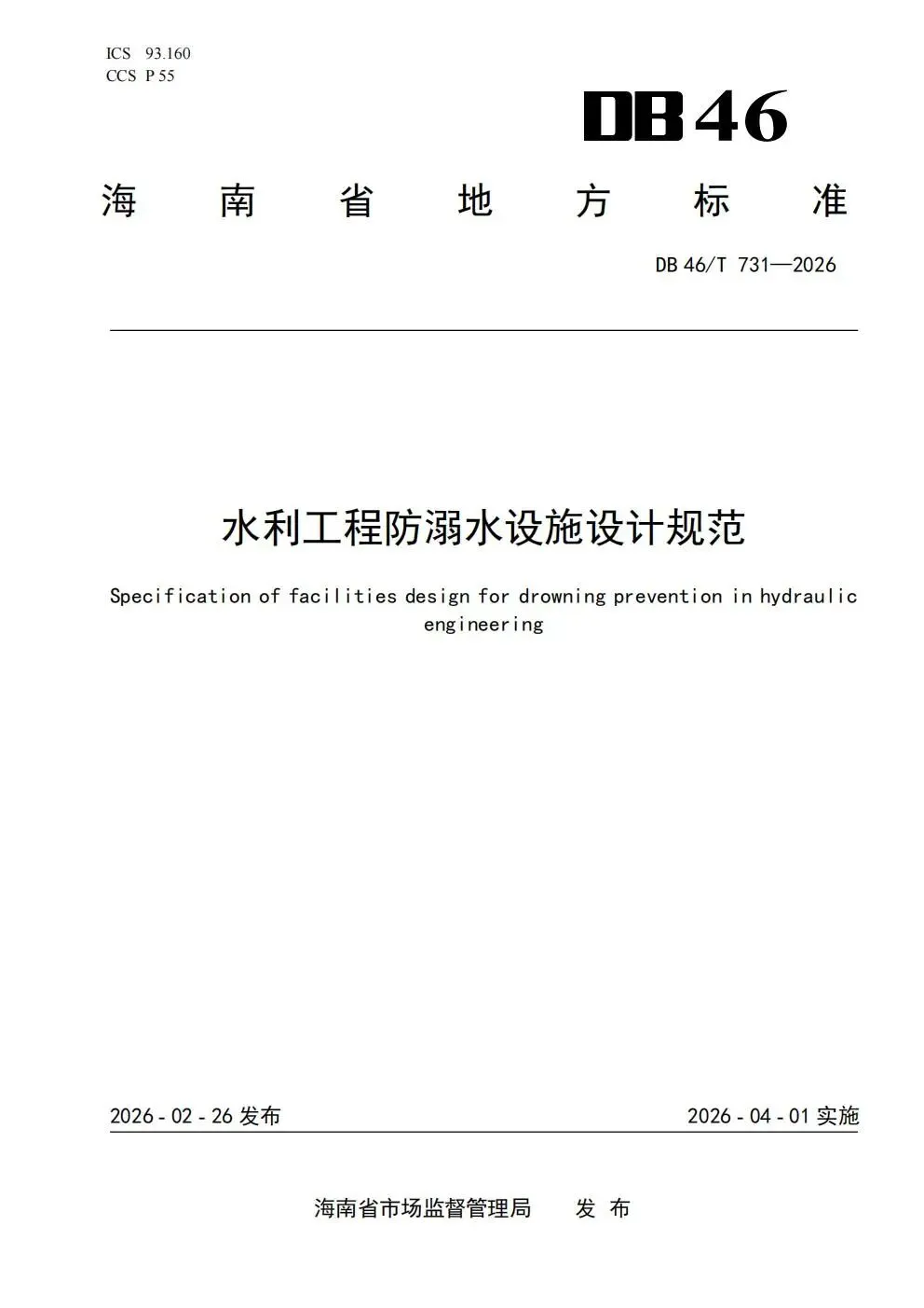 全文可下载!全国水利工程领域首个防溺水设计标准!《水利工程防溺水设施设计规范》(DB46/T 731-2026)