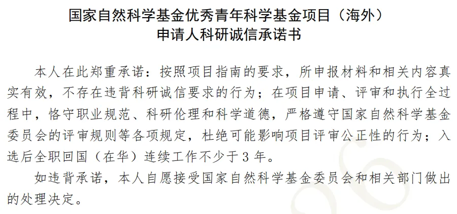 审查更严格:诚信承诺明确“全职回国≥3年”,依托单位须核查涉法及调查情况。