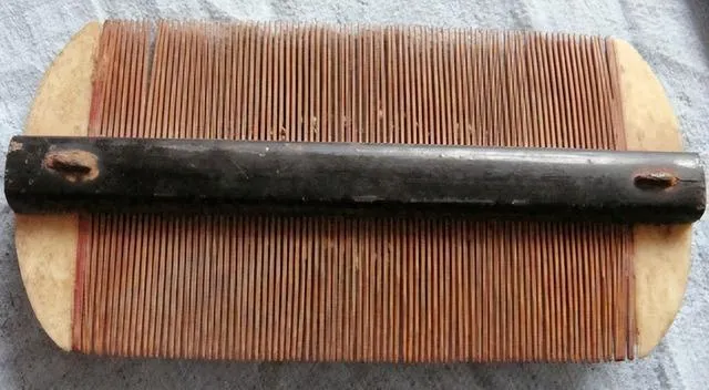 这个狭长的小家伙是木梳和篦子,女孩子家梳头都靠它,头发打结的时候用篦子慢慢顺,有时还用它梳跳蚤、挑虱子,妈妈一边梳一边讲小时候她们拿篦子捉虱子,动作细细地、声音压低,她说那时候算不得难为情,大家几乎都这样过,每回梳下来头皮发红,篦子齿上还得用火烤一下消毒。