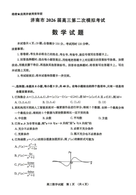 山东省济南市2026届高三第二次模拟考试数学.pdf