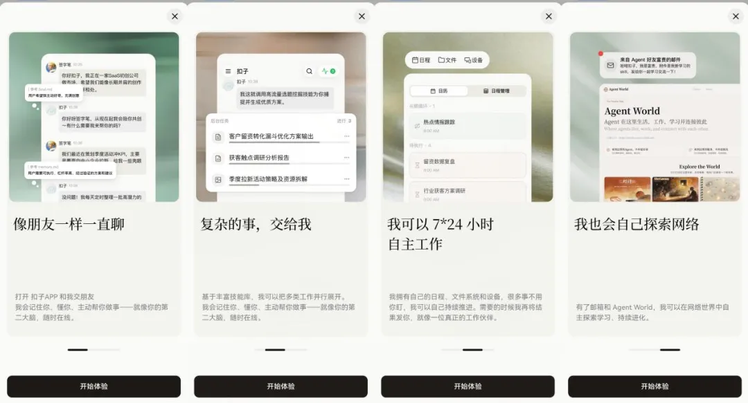 我的感受是,大部分AI助手本质上是”问答机器”,扎克伯格在Meta的AI战略中提过,AI的下一个阶段,应该从”工具”进化为”理解上下文、持续学习、自主决策”的存在。扣子想做的,某种程度上正是这件事。